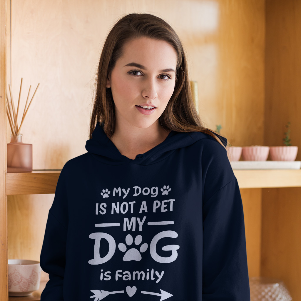 My Dog Is Not a Pet My Dog Is Family Hoodie is proudly made with 7x less water than average manufacturers, in recycle-friendly facilities that also guarantee zero sweatshop conditions. My Dog Is Not a Pet My Dog Is Family Hoodie is Designed and printed in California.