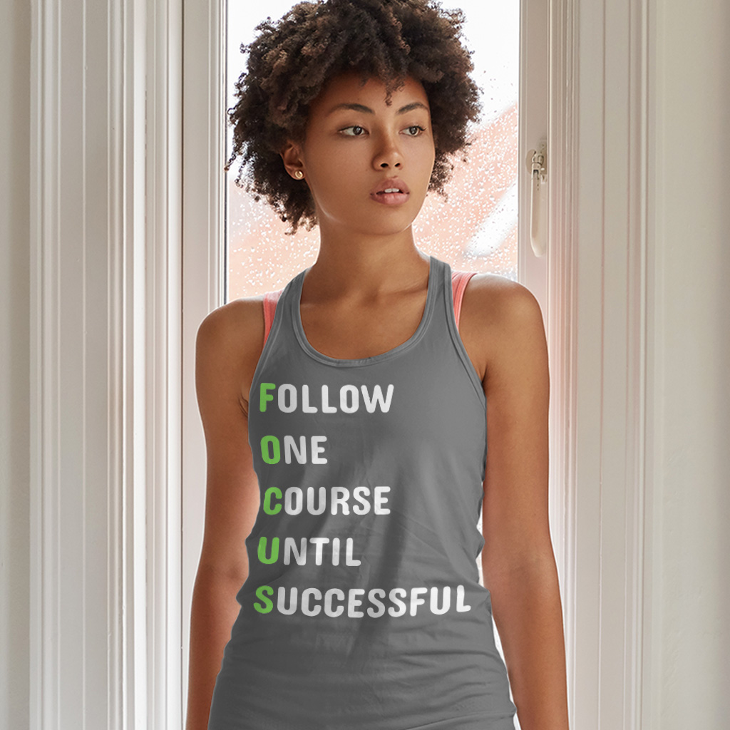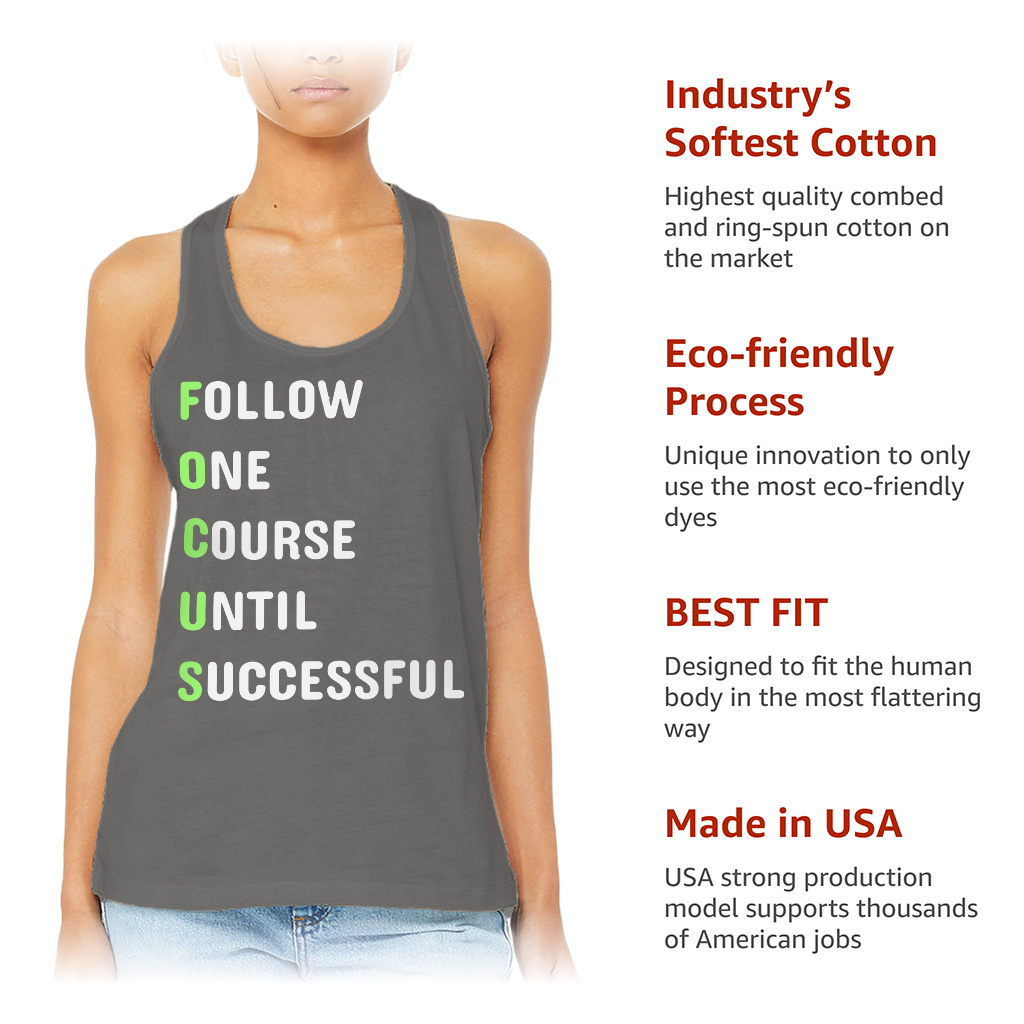 Focus Word Art Racerback Tank is no ordinary piece of clothing. Its side-seamed detail and flatlock-finished hems provide a retail fit for clothing that’s true to size.