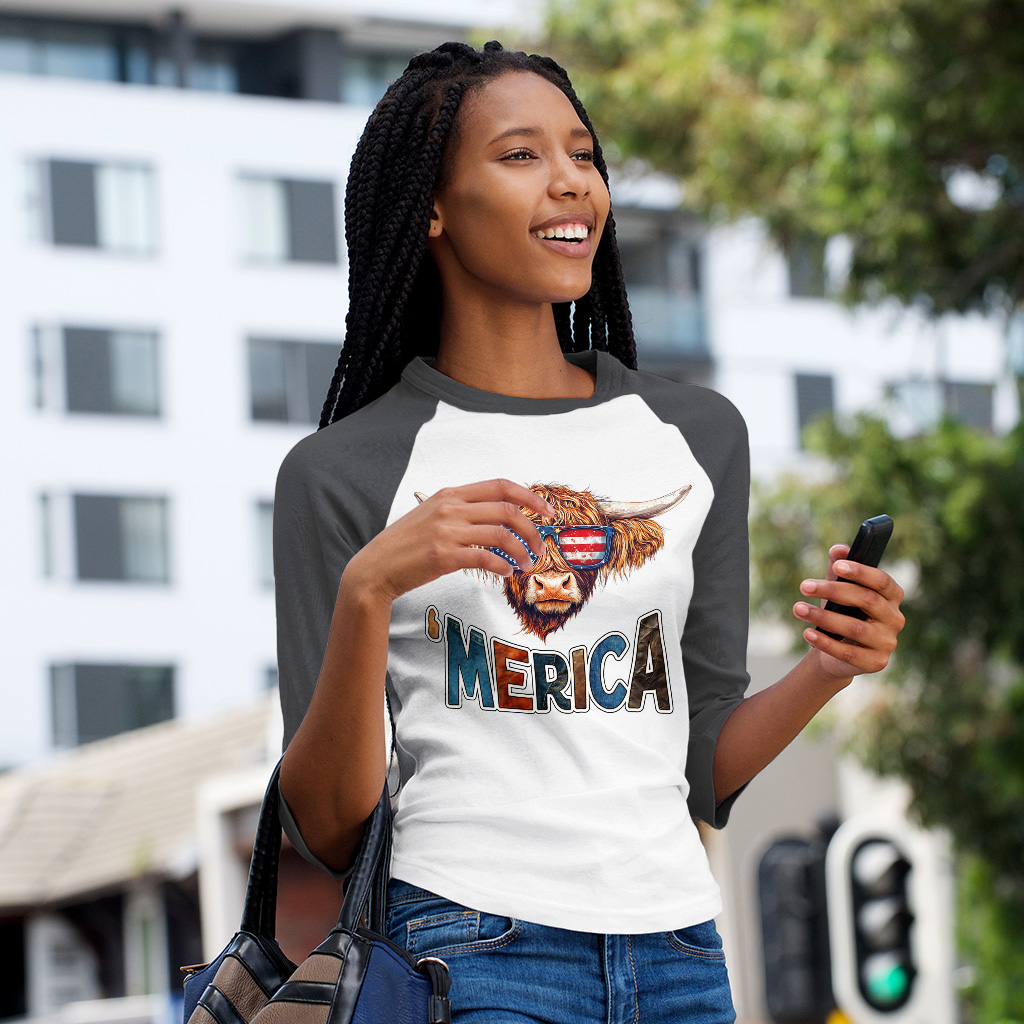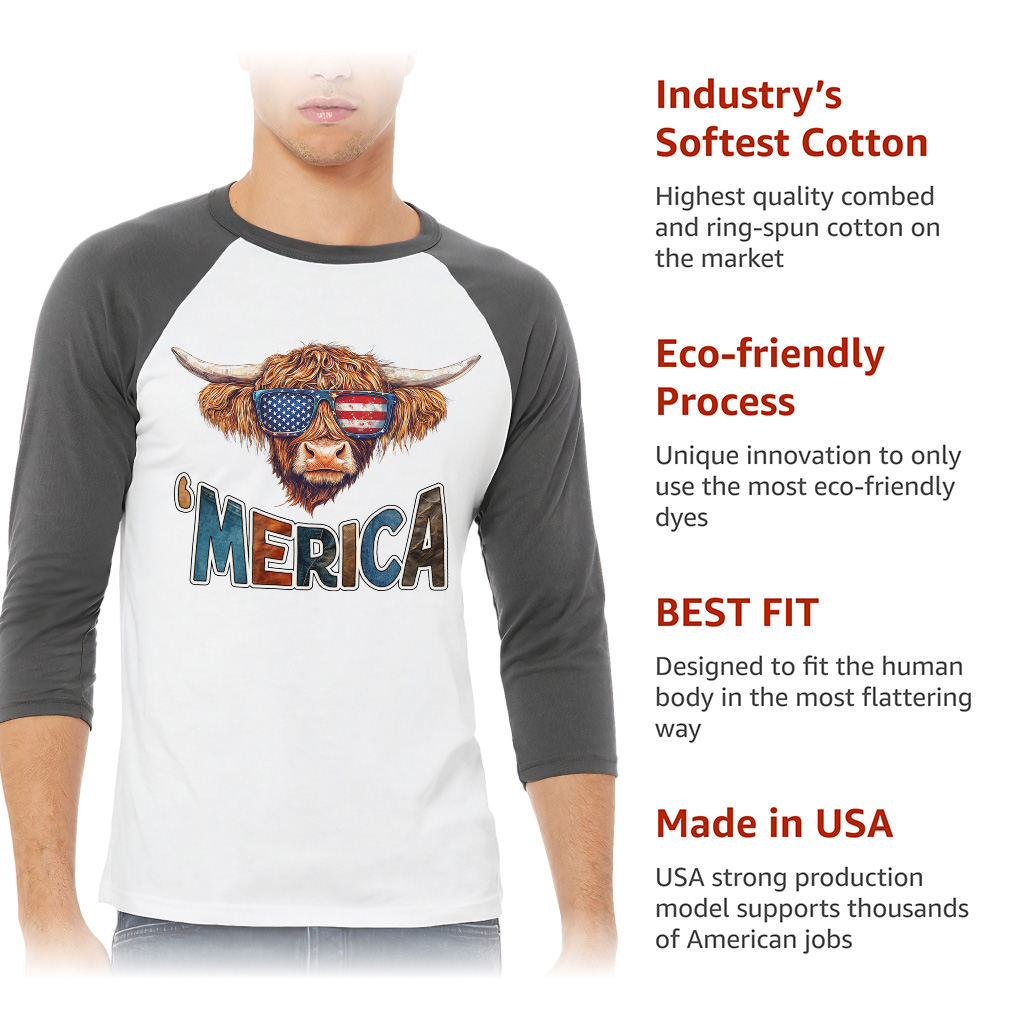 Highland Cow Baseball T-Shirt is proudly made with 7x less water than average manufacturers, in recycle-friendly facilities that also guarantee zero sweatshop conditions. Cool Design 3/4 Sleeve is designed and printed in California.