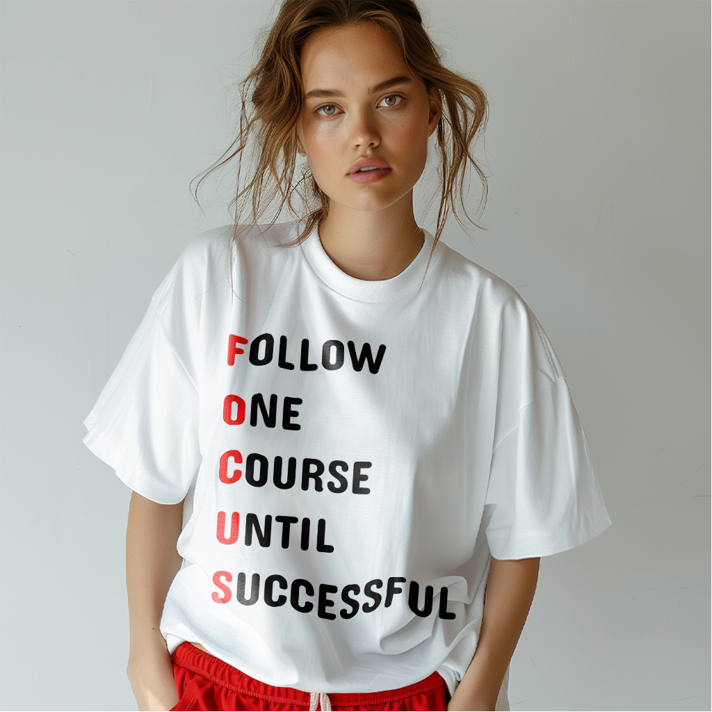 Focus Word Art T-Shirt is no ordinary piece of clothing. Its taped neck and shoulders, double-needle sleeve and bottom hems, and quarter-turned construction provide a retail fit for clothing that’s true to size. Motivational Quote Heavy Cotton Tee is Designed and printed in California.