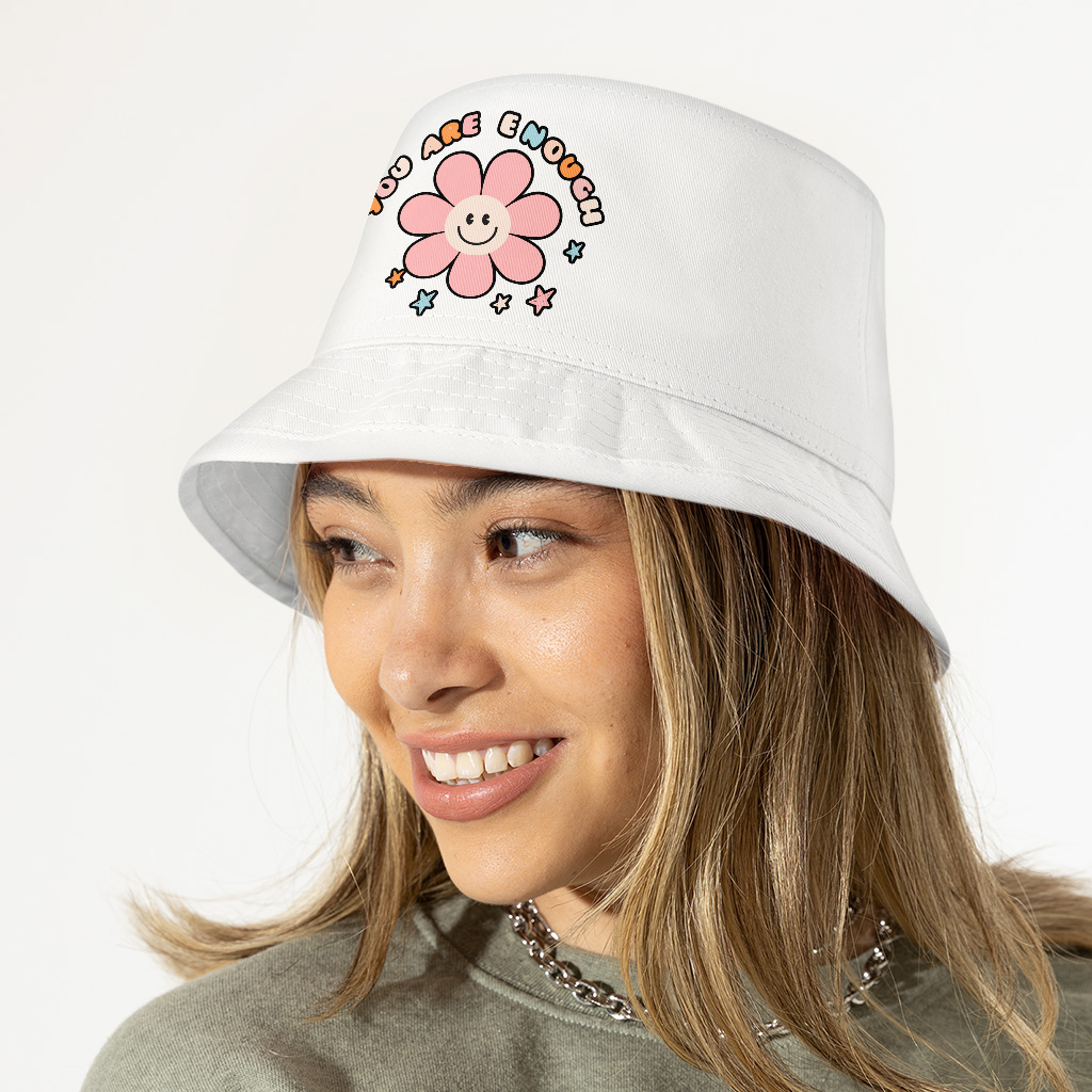 Made from 100% polyester. You Are Enough Bucket Hat is made for men and women.