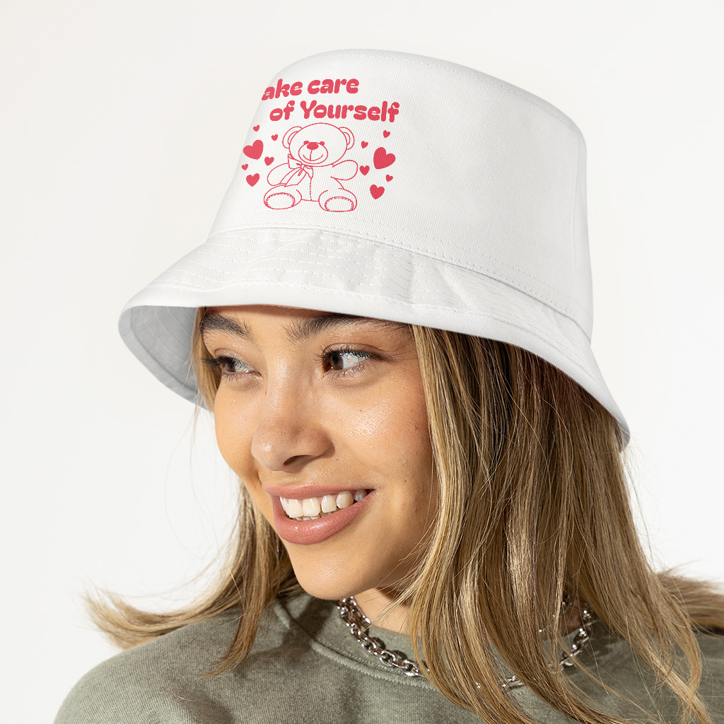This fascinating and classic Bucket Hat is the perfect bucket hat for anywhere you go with outdoor activities. Take Care Of Yourself Bucket Hat combines both colorful styles to turn your head and comfort for your all-day wear. You can use it for your usual day-to-day activities. Cute Teddy Bear Trendy Hat is designed and printed in California.