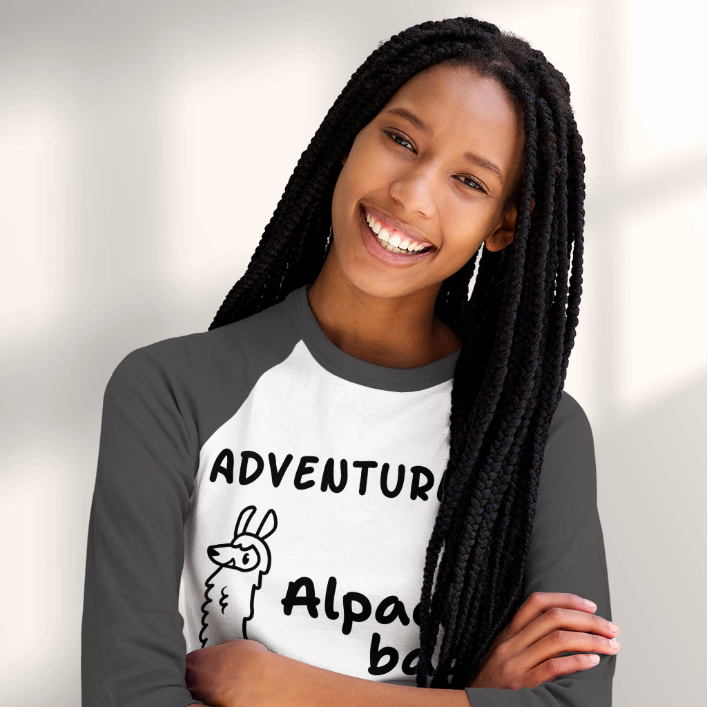 Adventure Alpaca Bag Baseball T-Shirt – Funny Pun 3/4 Sleeve – Adventure Raglan Jersey Shirt
