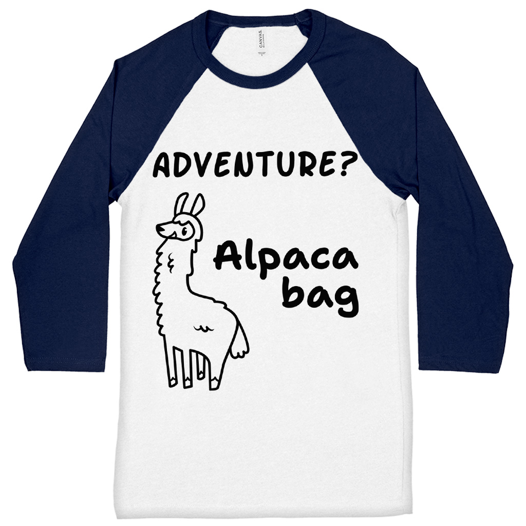 Adventure Alpaca Bag Baseball T-Shirt – Funny Pun 3/4 Sleeve – Adventure Raglan Jersey Shirt