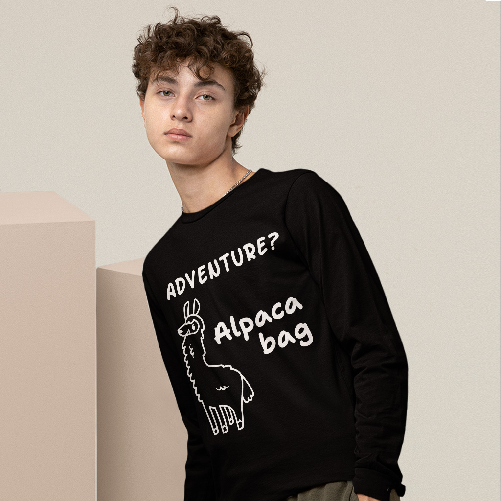 Adventure Alpaca Bag Long Sleeve T-Shirt – Funny Pun T-Shirt – Adventure Basic Tee