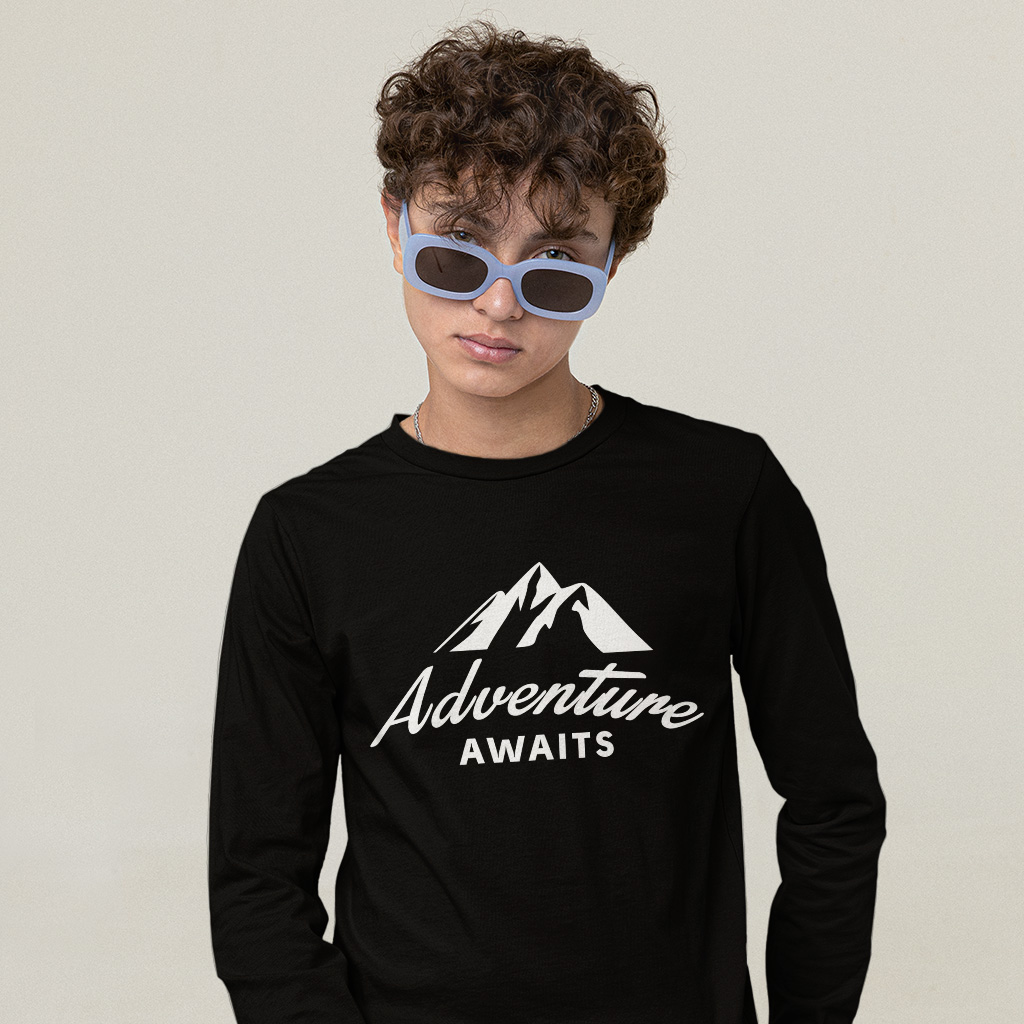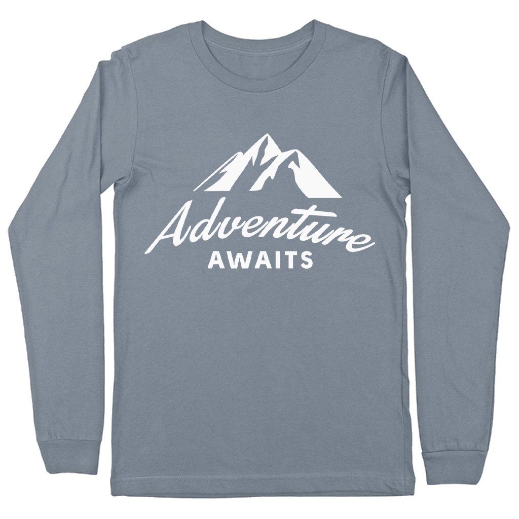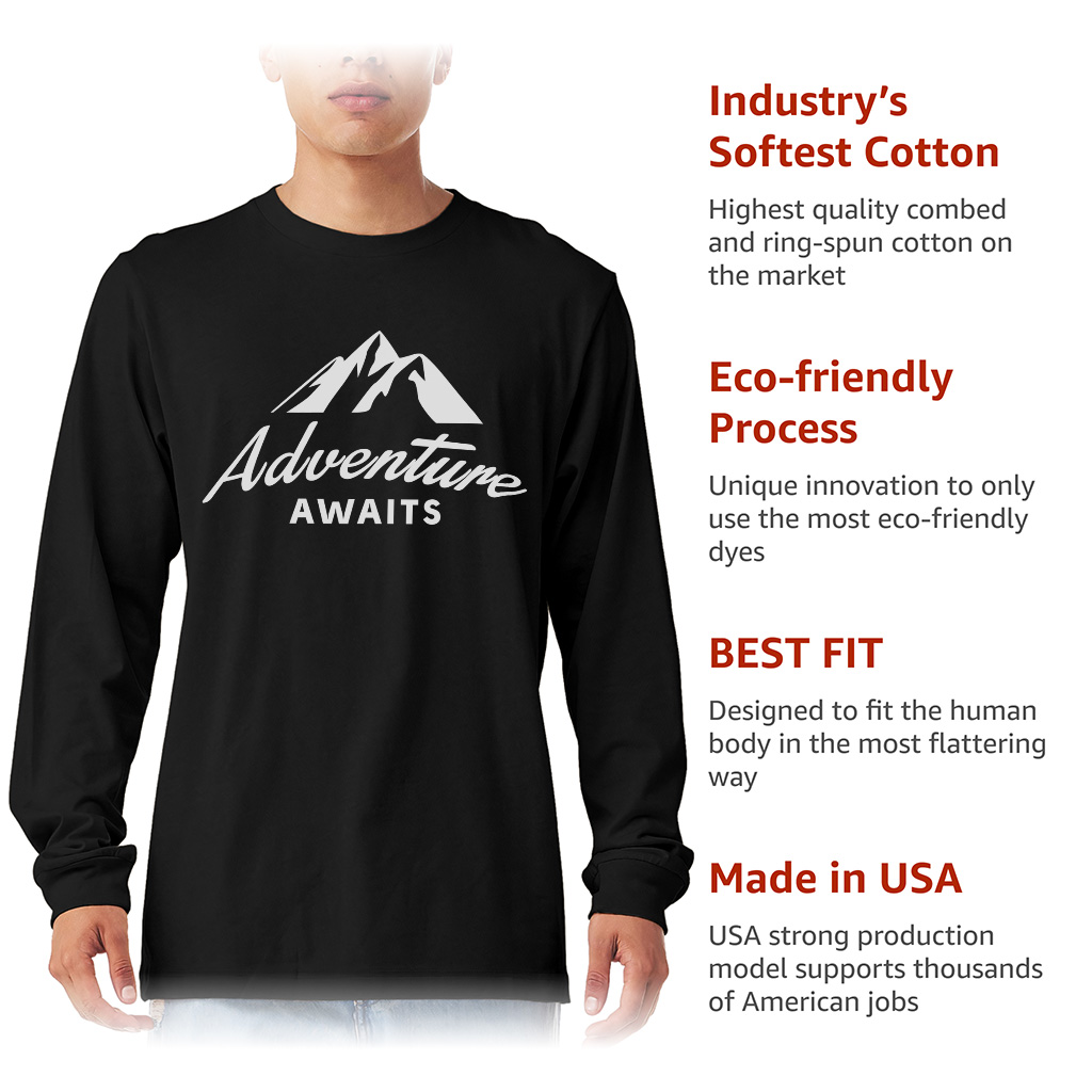 Adventure Awaits Long Sleeve T-Shirt is proudly made with 7x less water than average manufacturers, in recycle-friendly facilities that also guarantee zero sweatshop conditions. Hiking T-Shirt is designed and printed in California.