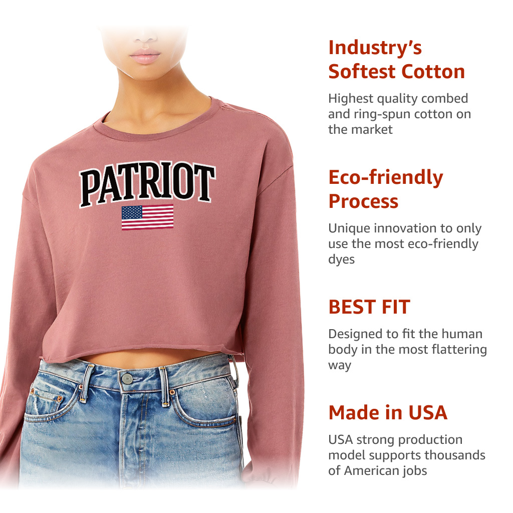 Suitable for daily wear, home, working, holiday. Wearing this top tee, you will be more attractive and chic. Show your casual and cool style with Patriotic Cropped Long Sleeve Sweatshirt.