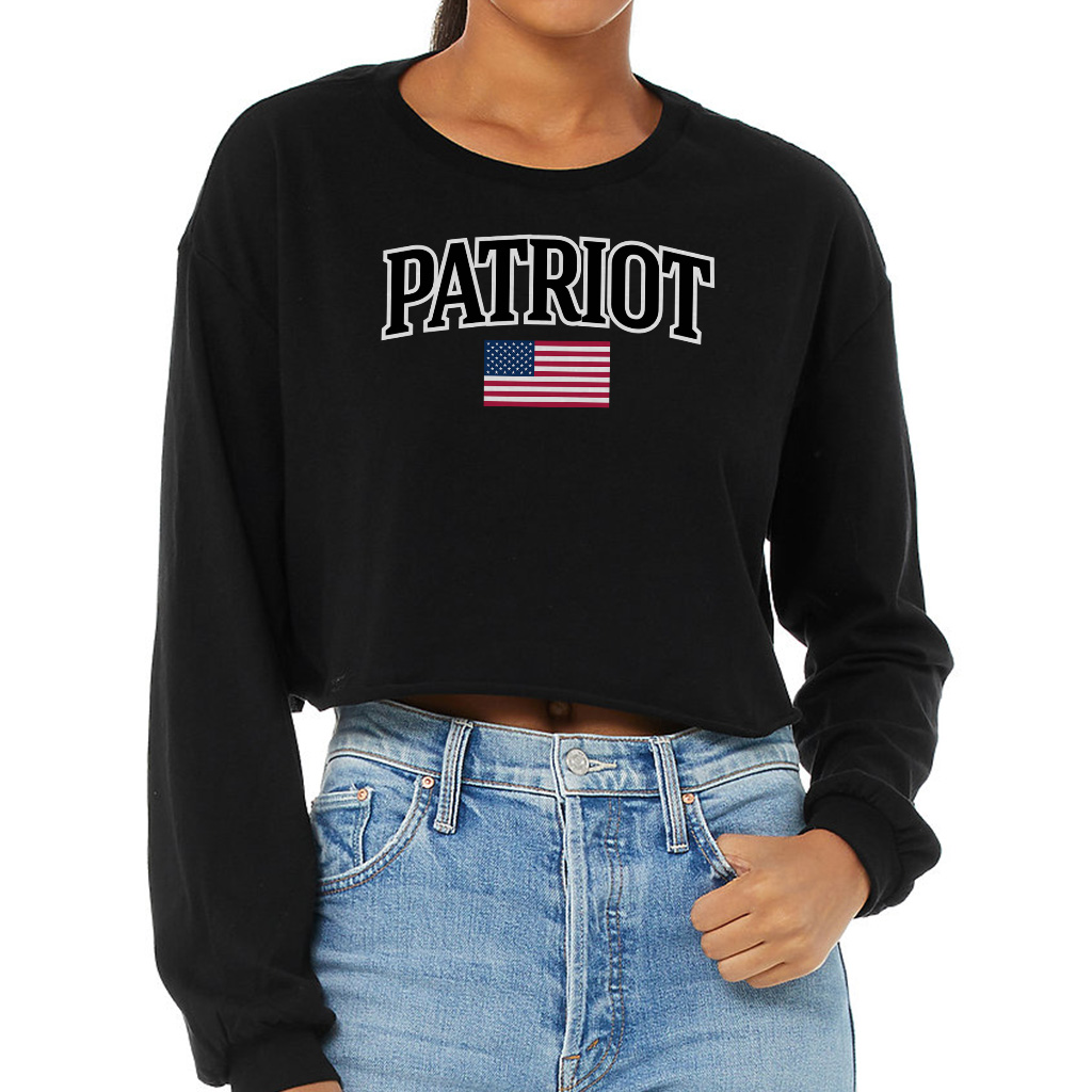 America Flag Patriot Cropped Long Sleeve Sweatshirt