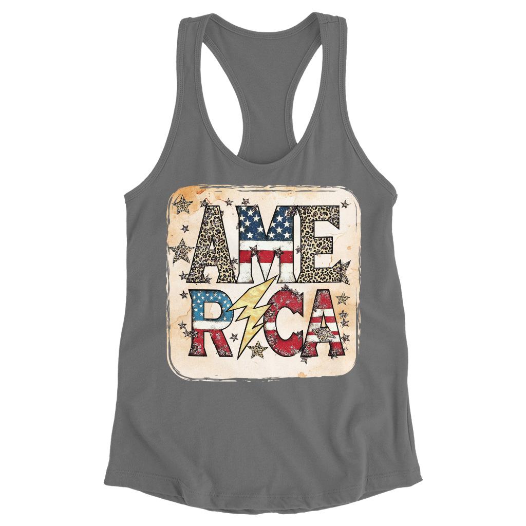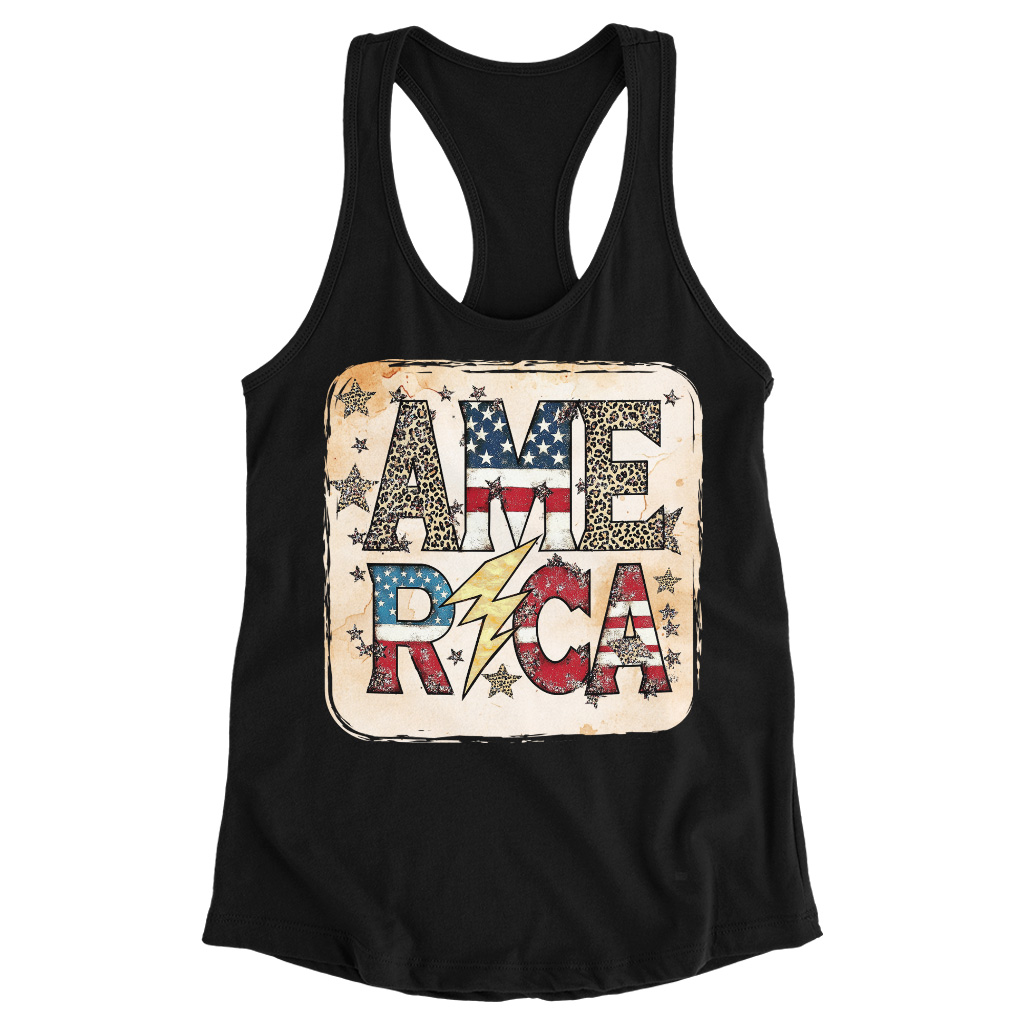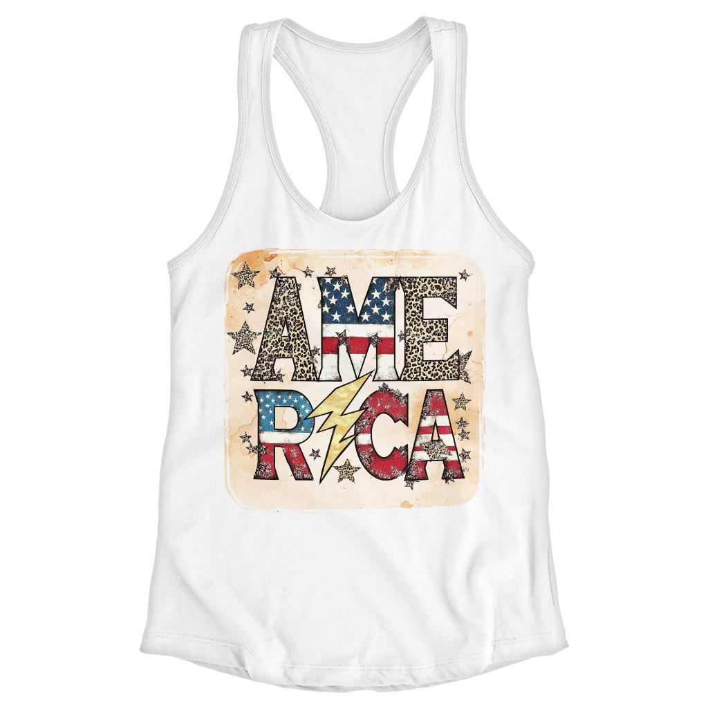 America Graphic Racerback Tank is no ordinary piece of clothing. Its side-seamed detail and flatlock-finished hems provide a retail fit for clothing that’s true to size.