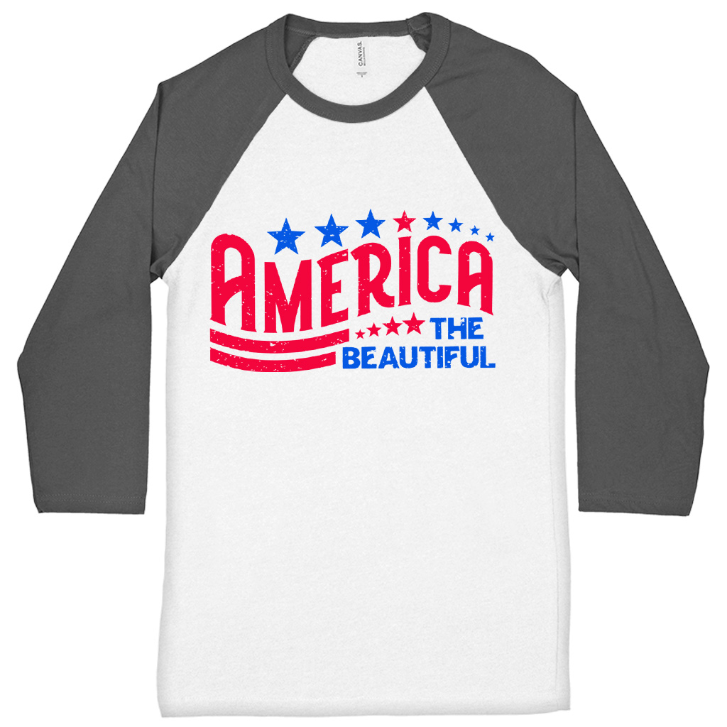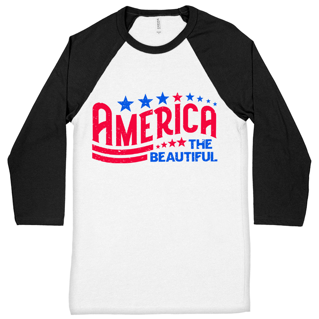 America The Beautiful Baseball T-Shirt is proudly made with 7x less water than average manufacturers, in recycle-friendly facilities that also guarantee zero sweatshop conditions. 4th Of July 3/4 Sleeve is designed and printed in California.