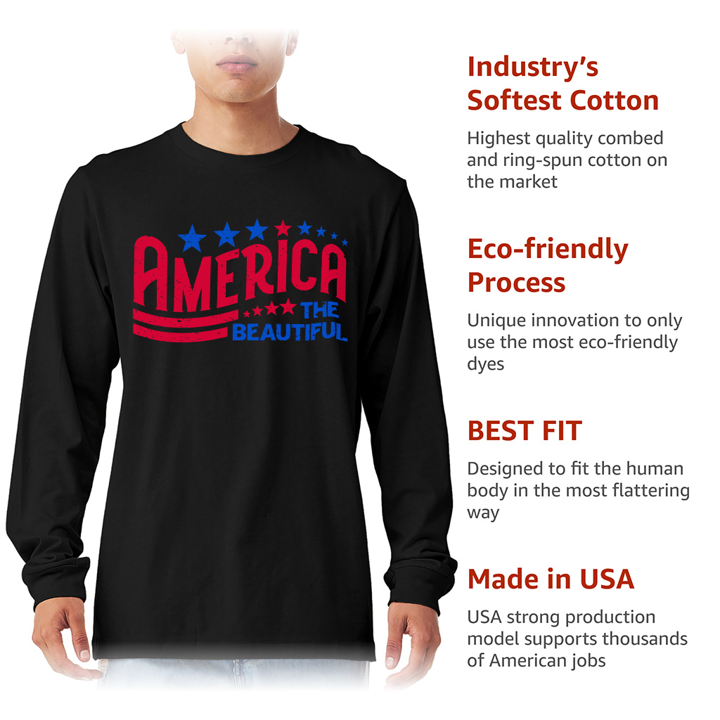 America The Beautiful Long Sleeve T-Shirt is proudly made with 7x less water than average manufacturers, in recycle-friendly facilities that also guarantee zero sweatshop conditions. Retro T-Shirt is designed and printed in California.