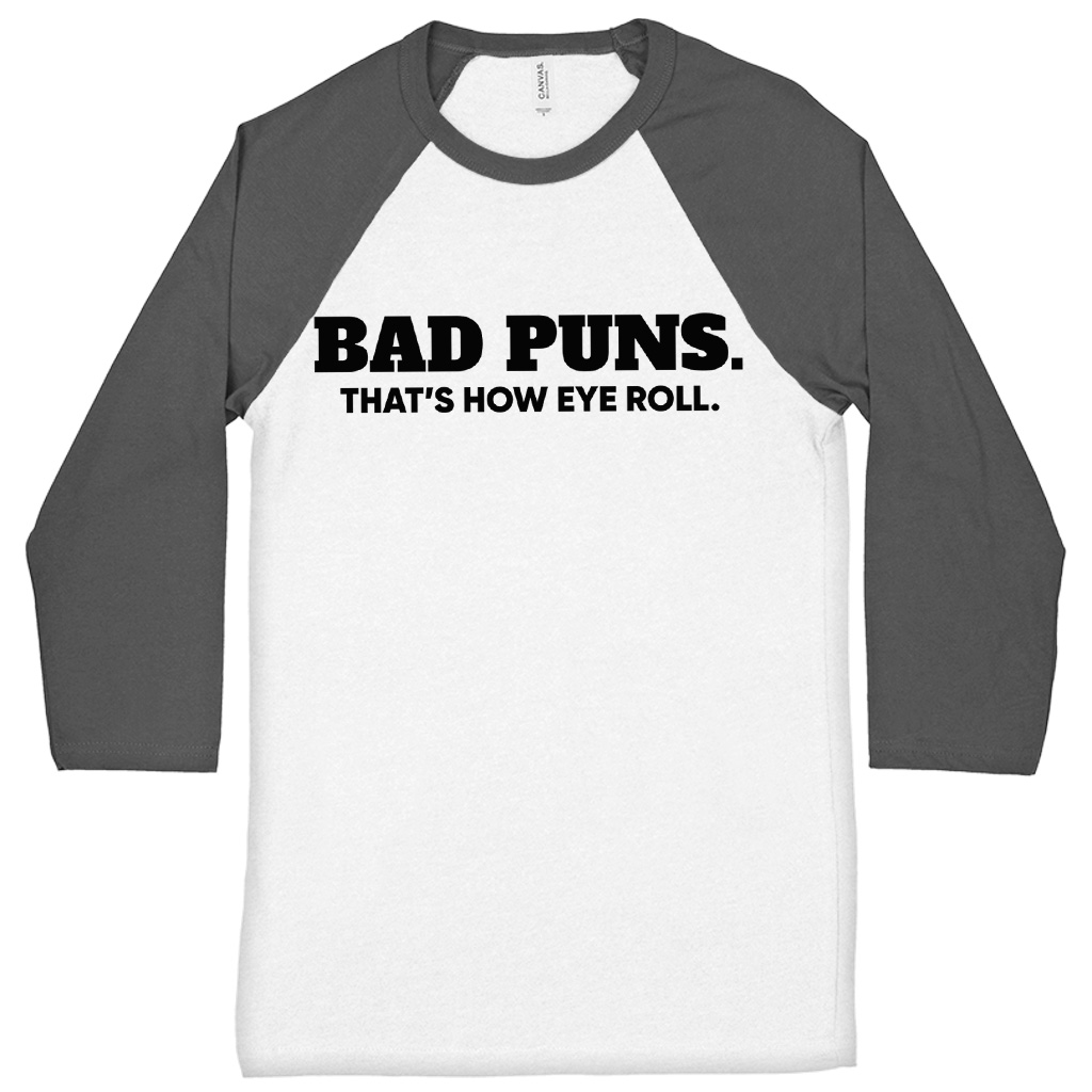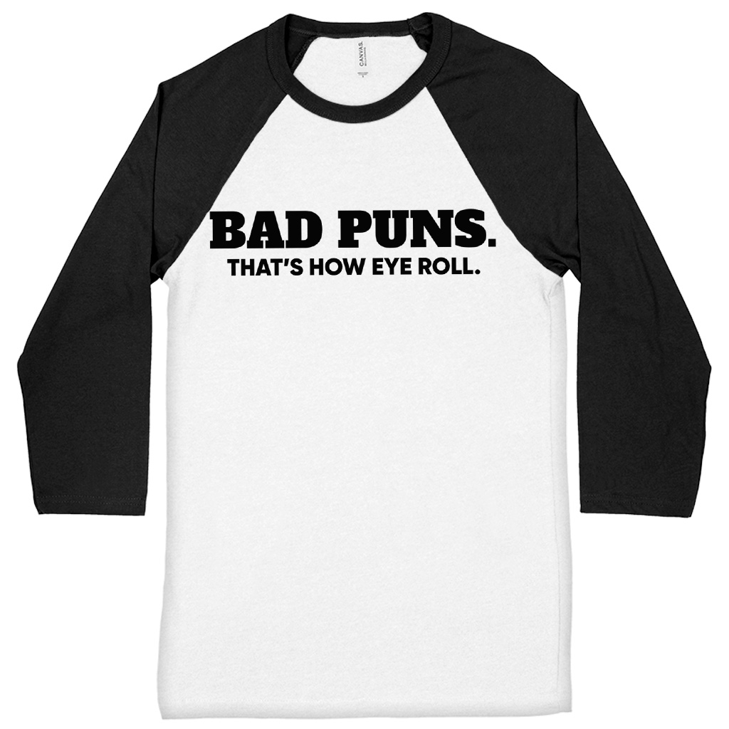 Bad Puns That’s How Eye Roll Baseball T-Shirt is proudly made with 7x less water than average manufacturers, in recycle-friendly facilities that also guarantee zero sweatshop conditions. Funny Joke 3/4 Sleeve is designed and printed in California.