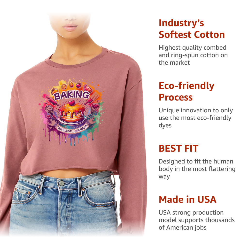 Baking Is My Love Language Cropped Long Sleeve Sweatshirt