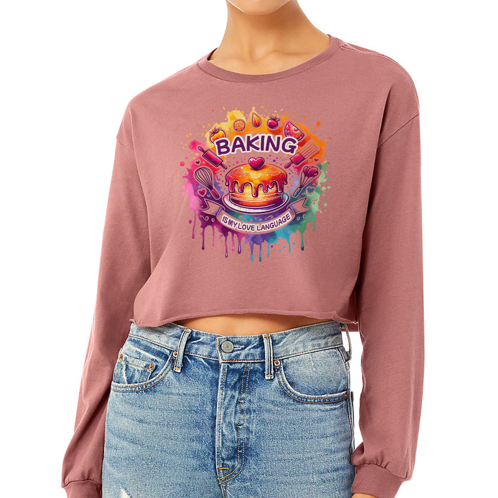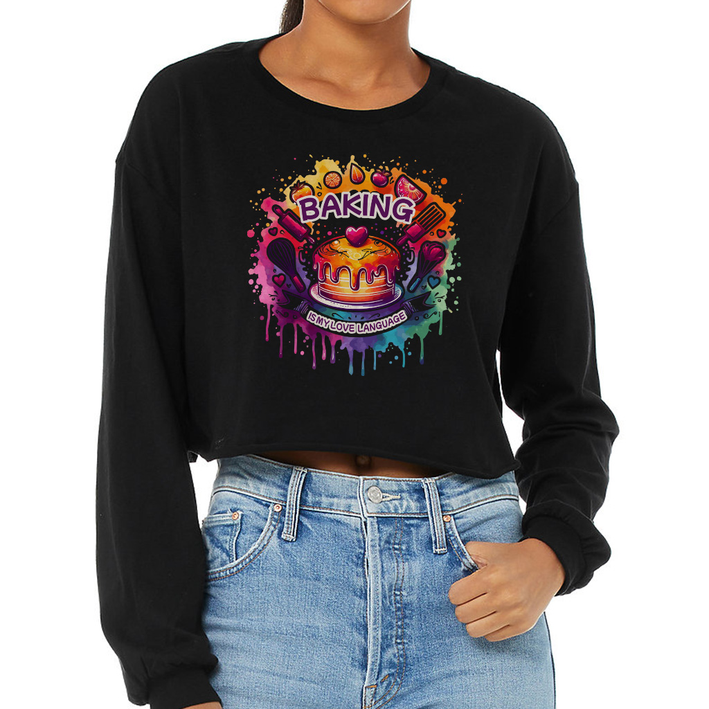Baking Is My Love Language Cropped Long Sleeve Sweatshirt