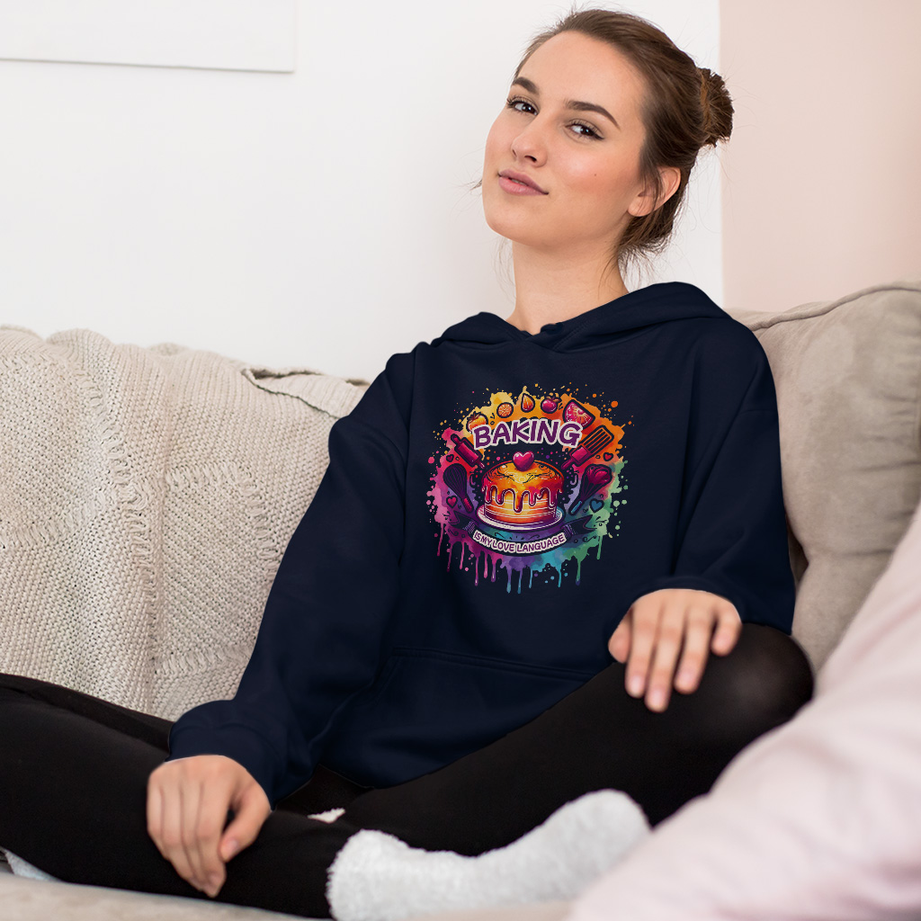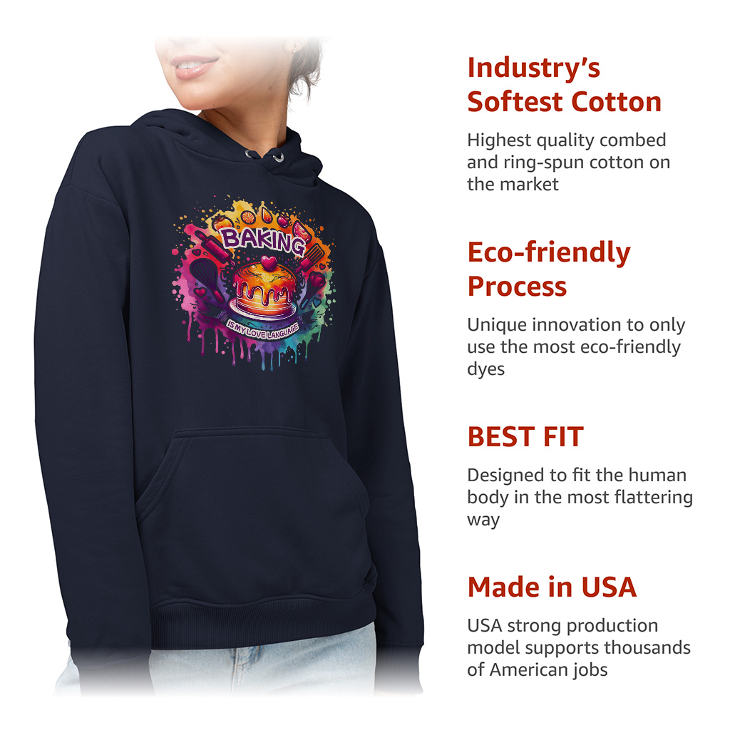 Baking Is My Love Language Hoodie – Kitchen Chef Hooded Sweatshirt – Colorful Graphic Unisex Hoodie
