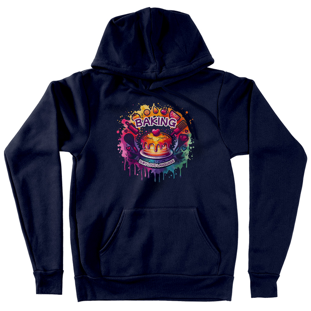 Baking Is My Love Language Hoodie – Kitchen Chef Hooded Sweatshirt – Colorful Graphic Unisex Hoodie