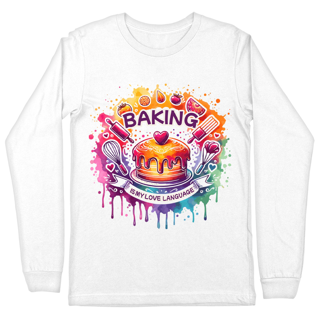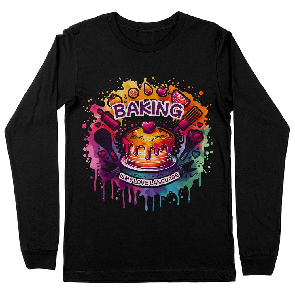Baking Is My Love Language Long Sleeve T-Shirt is proudly made with 7x less water than average manufacturers, in recycle-friendly facilities that also guarantee zero sweatshop conditions. Colorful Graphic T-Shirt is designed and printed in California.