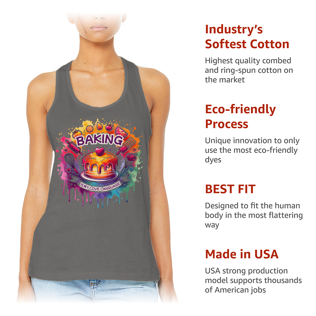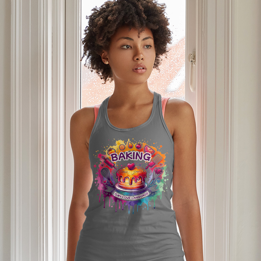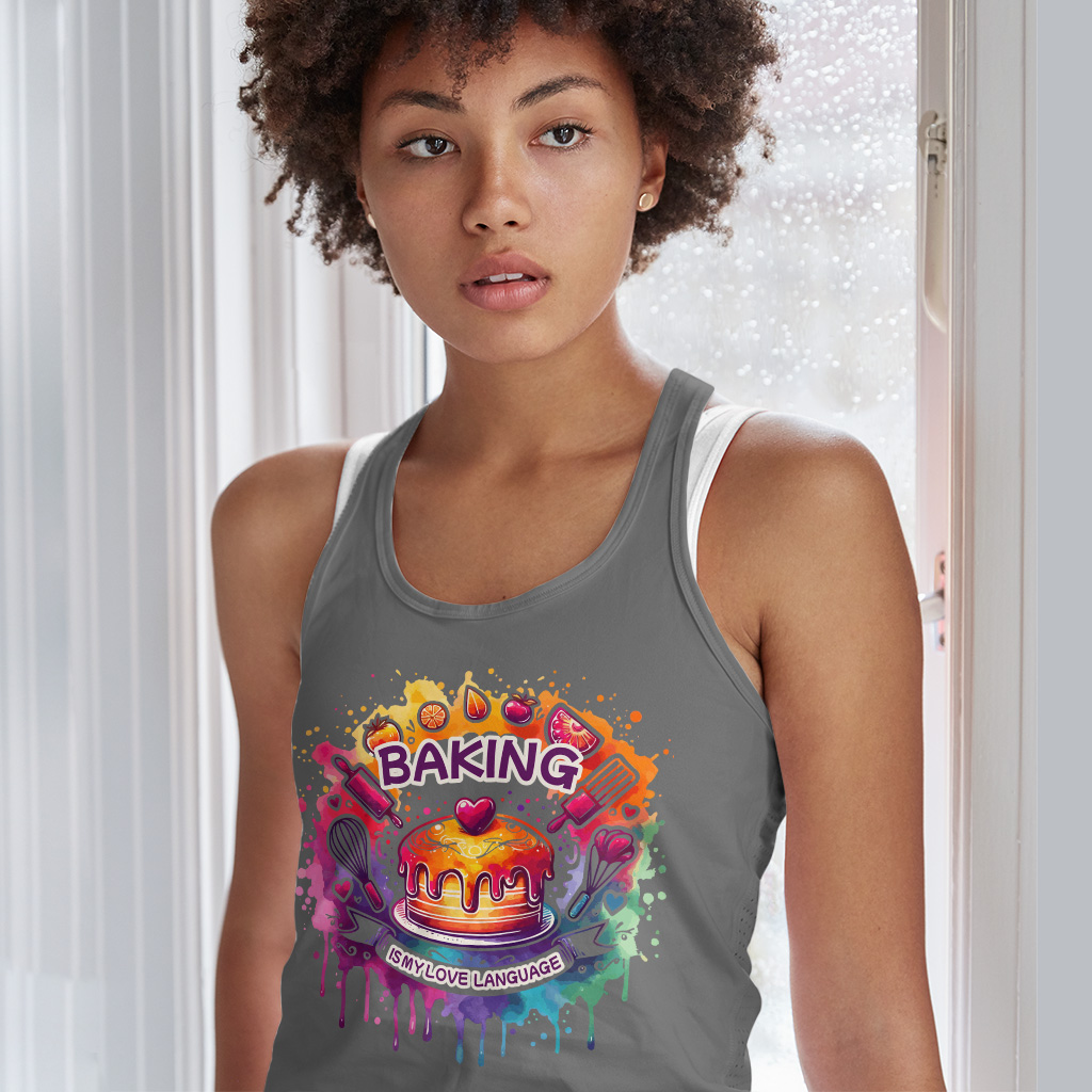 Baking Is My Love Language Racerback Tank is no ordinary piece of clothing. Its side-seamed detail and flatlock-finished hems provide a retail fit for clothing that’s true to size.