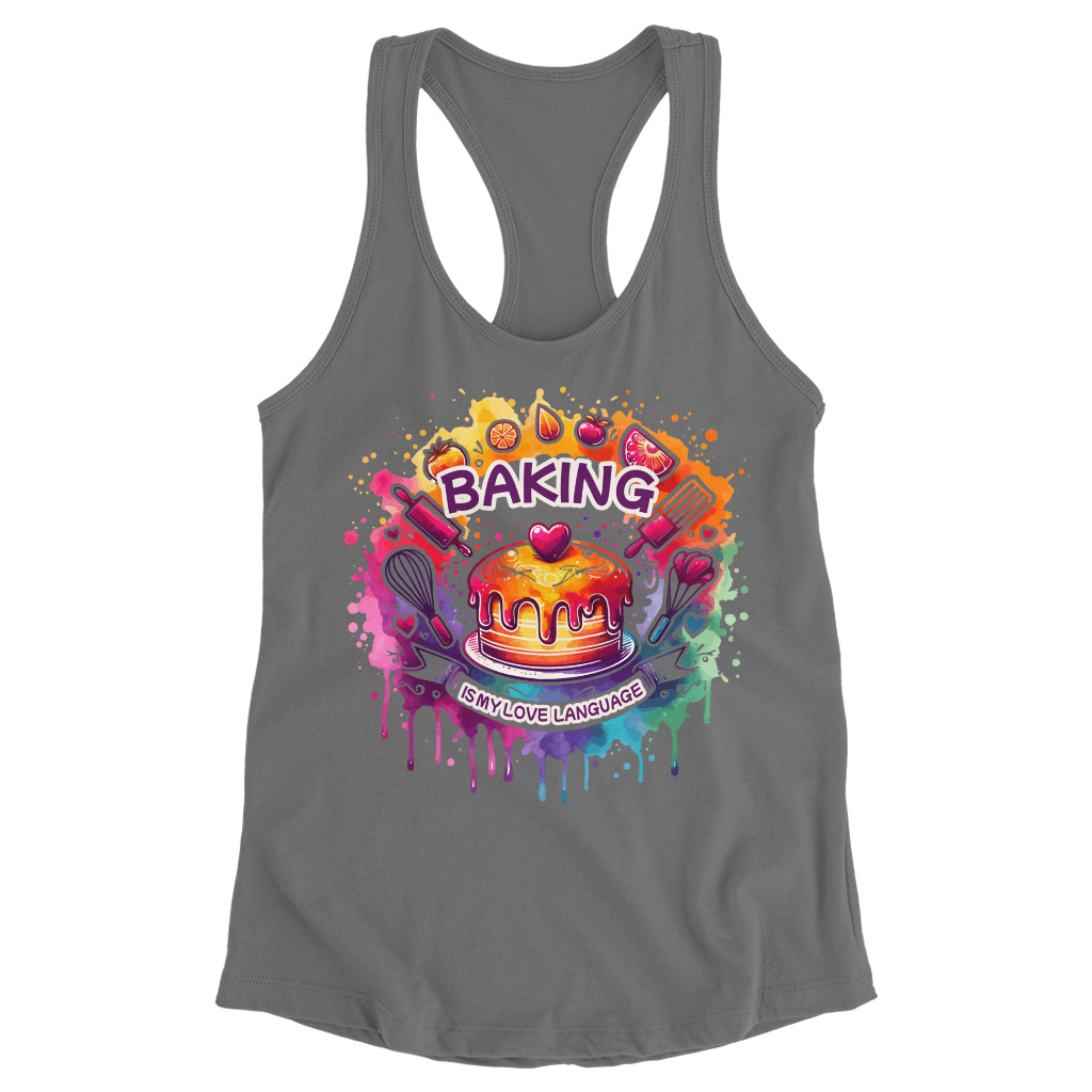 Baking Is My Love Language Racerback Tank is no ordinary piece of clothing. Its side-seamed detail and flatlock-finished hems provide a retail fit for clothing that’s true to size.