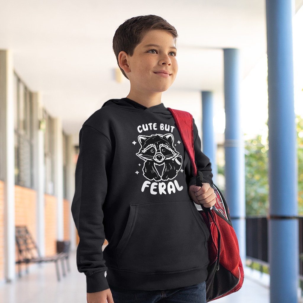 Cute But Feral Kids’ Hoodie – Animal Graphic Hooded Sweatshirt – Meme Raccoon Hoodie for Kids