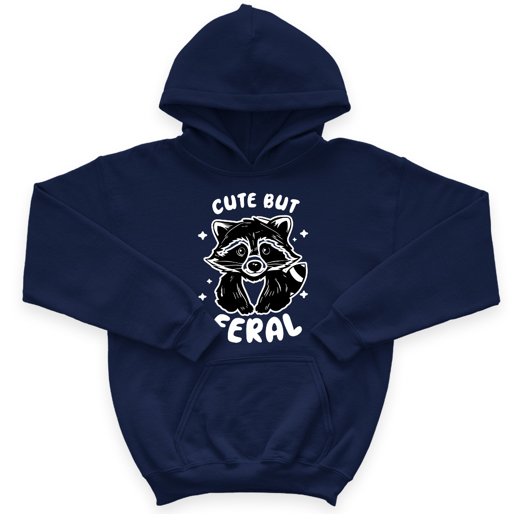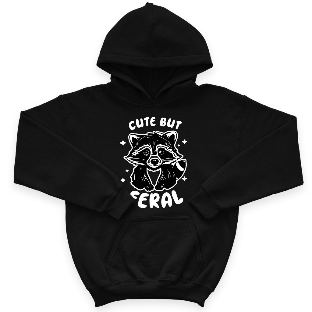 Cute But Feral Kids’ Hoodie – Animal Graphic Hooded Sweatshirt – Meme Raccoon Hoodie for Kids