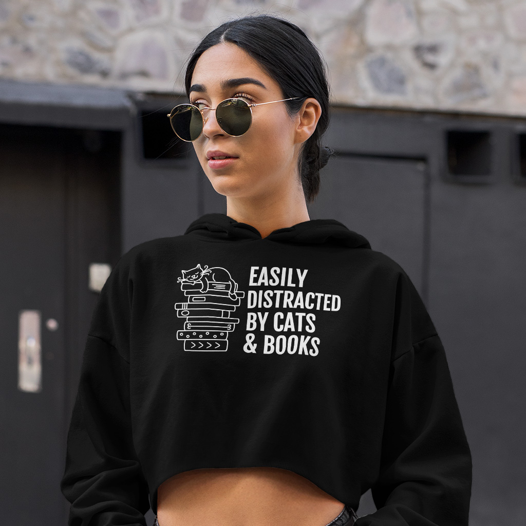 Easily Distracted By Cats And Books Women’s Cropped Hoodie