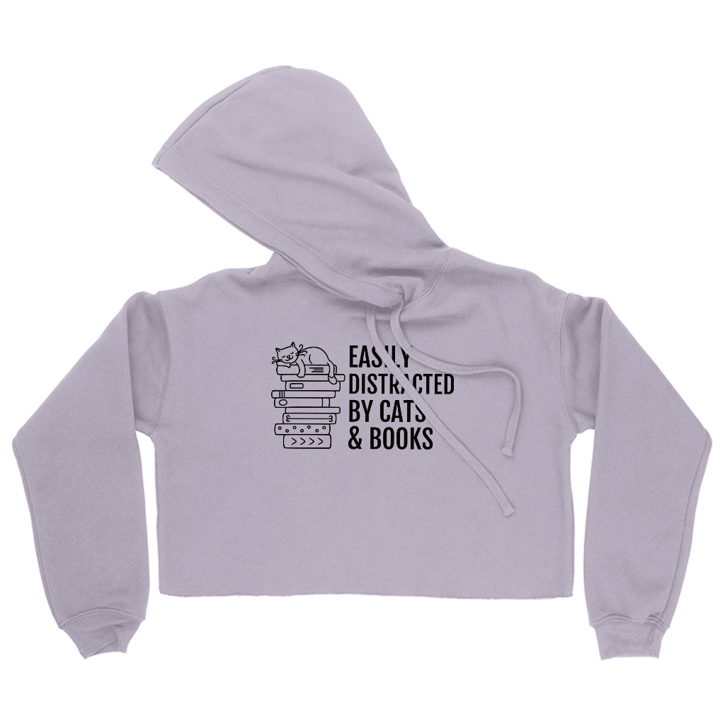 Easily Distracted By Cats And Books Women’s Cropped Hoodie