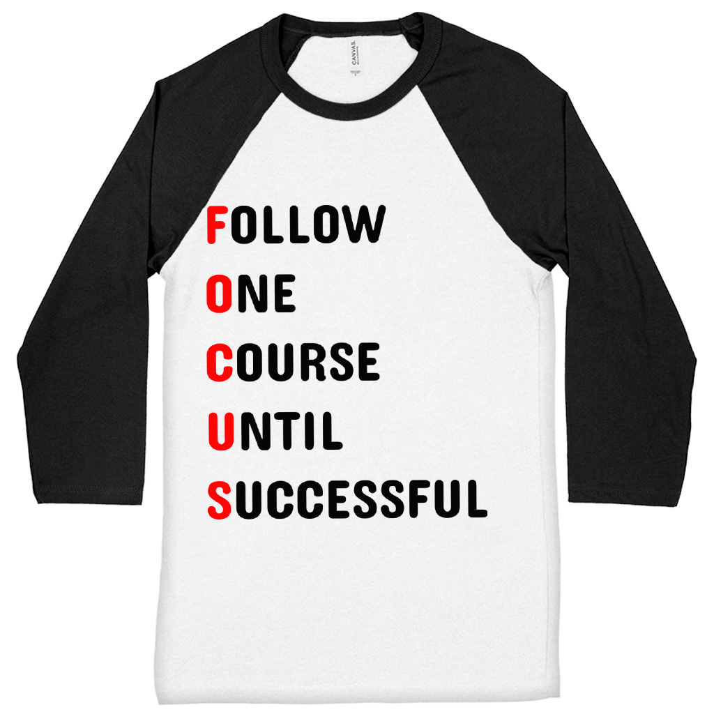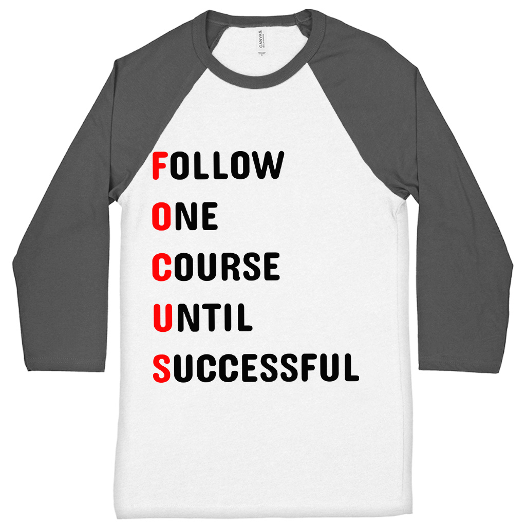 Focus Word Art Baseball T-Shirt is proudly made with 7x less water than average manufacturers, in recycle-friendly facilities that also guarantee zero sweatshop conditions. Success Mindset 3/4 Sleeve is designed and printed in California.