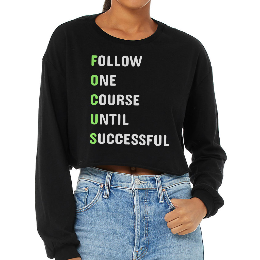 Focus Word Art Cropped Long Sleeve Sweatshirt