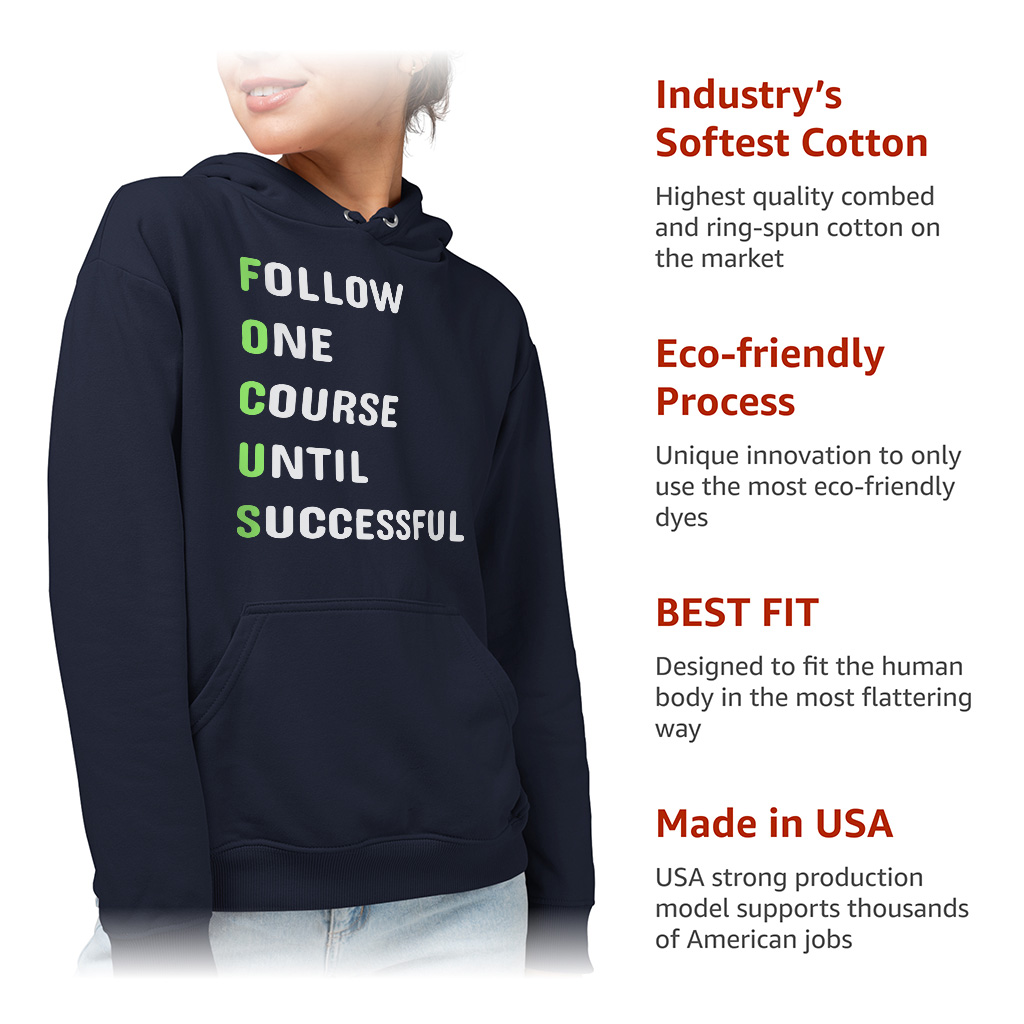 Focus Word Art Hoodie is proudly made with 7x less water than average manufacturers, in recycle-friendly facilities that also guarantee zero sweatshop conditions. Focus Word Art Hoodie is Designed and printed in California.