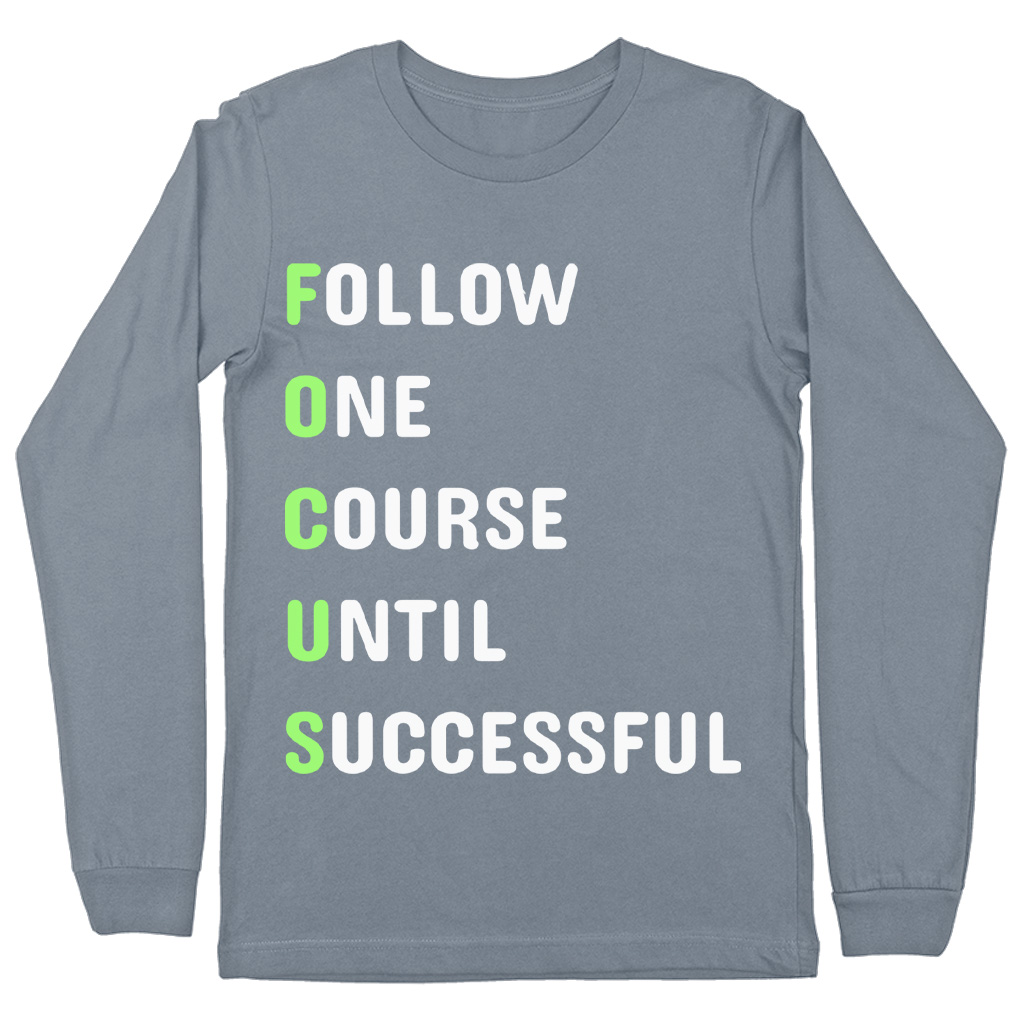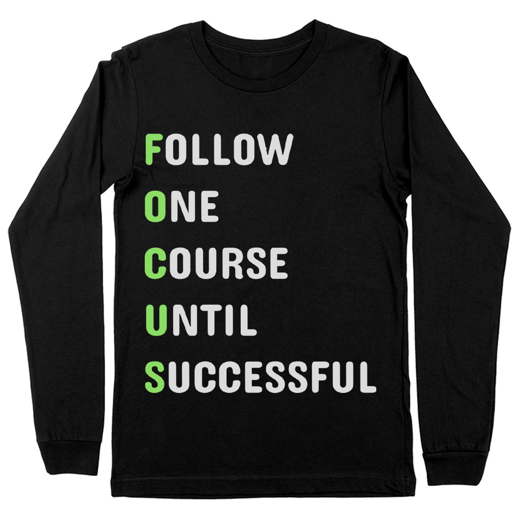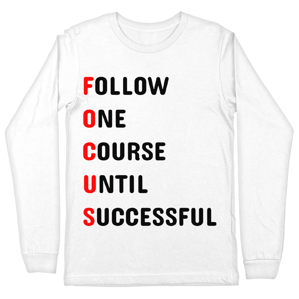 Focus Word Art Long Sleeve T-Shirt is proudly made with 7x less water than average manufacturers, in recycle-friendly facilities that also guarantee zero sweatshop conditions. Success Mindset T-Shirt is designed and printed in California.