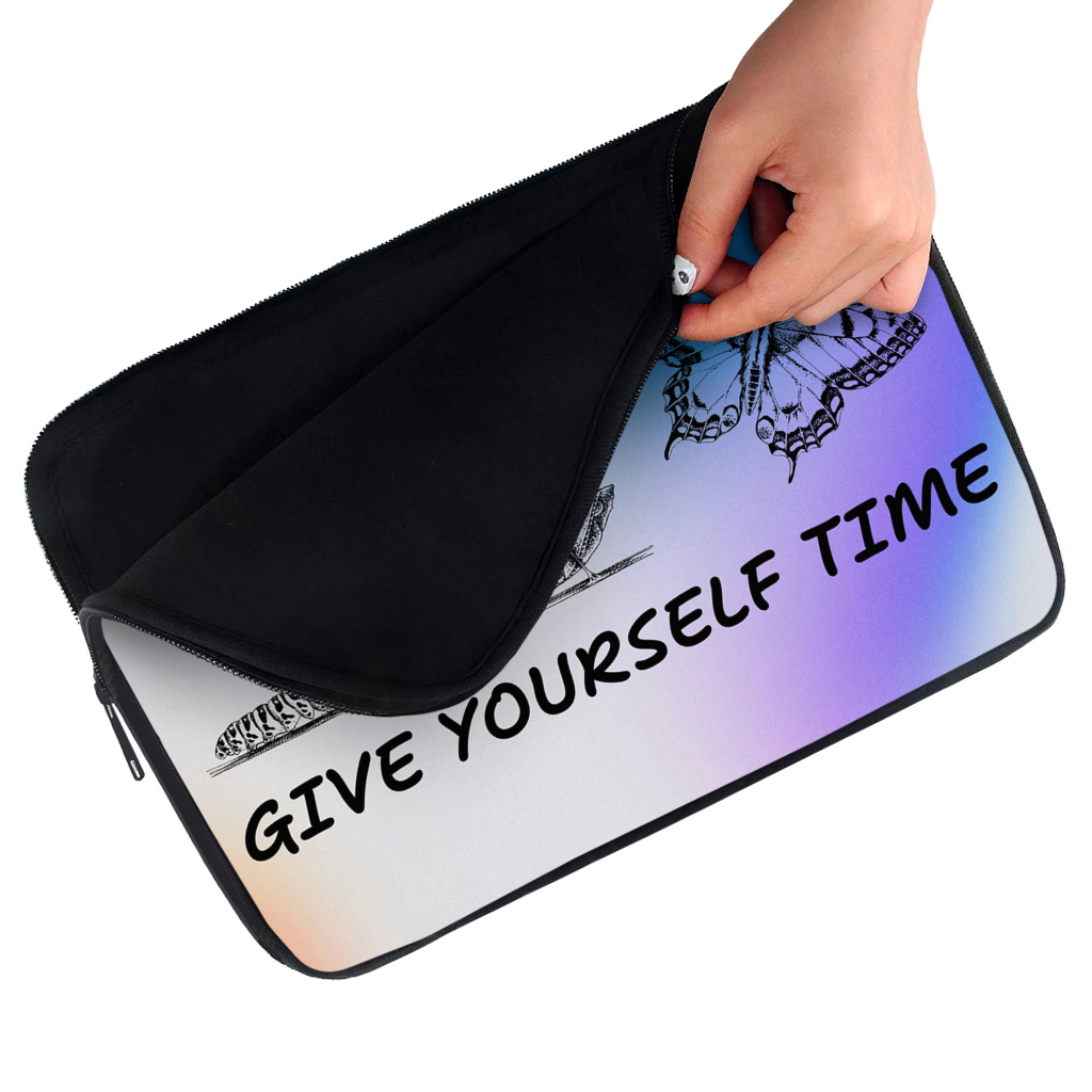 Give Yourself Time Laptop Sleeve 12-15 inch emphasizes protection and aesthetics at the same time. The protective layer makes this laptop sleeve bag can absorb impacts effectively, reduce damages caused by accidentally bumping and protect your notebook from scratches.
