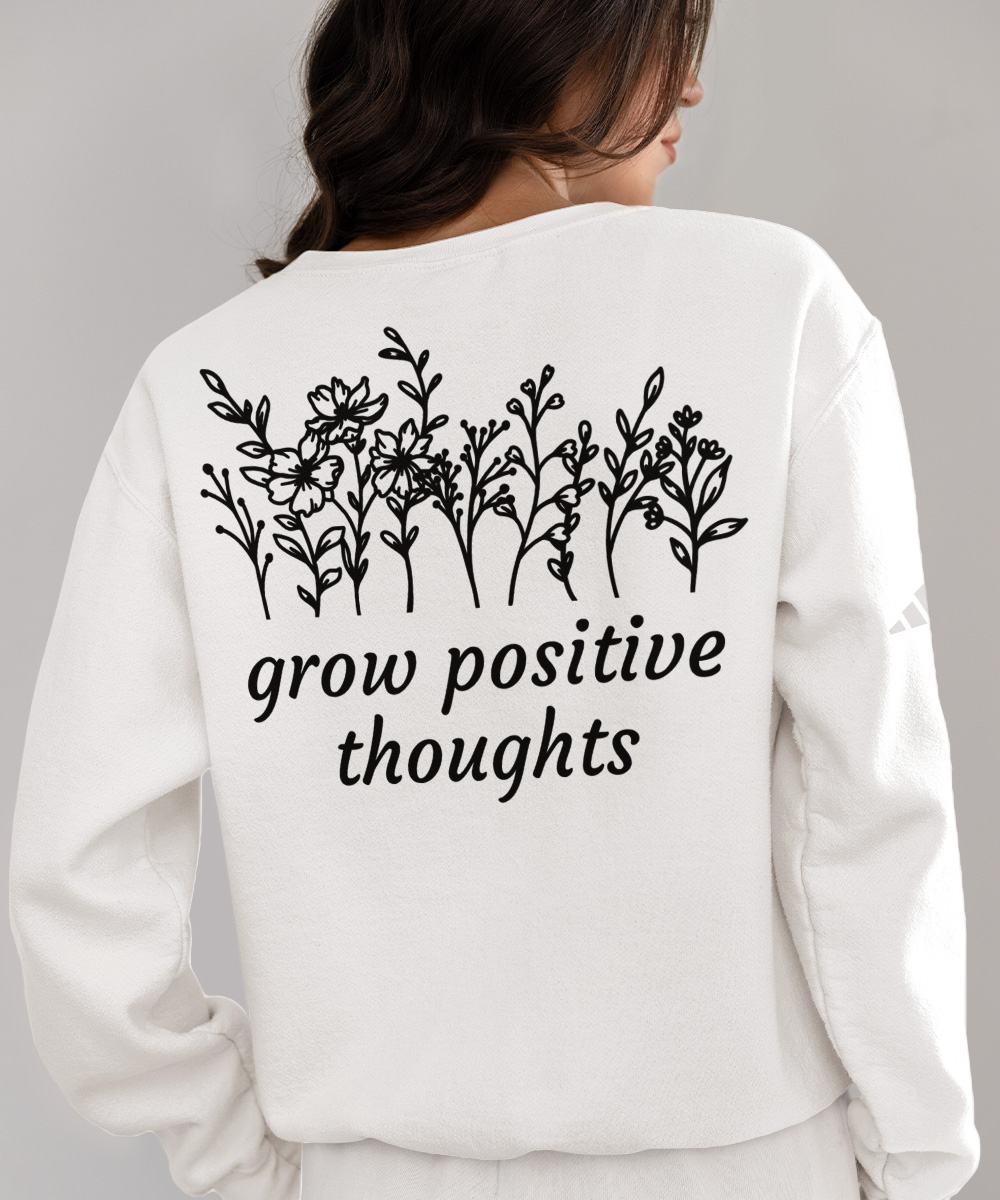 Grow Positive Thoughts adidas Sweatshirt – Kindness Sweatshirt – Flowers Graphic Crewneck Sweatshirt