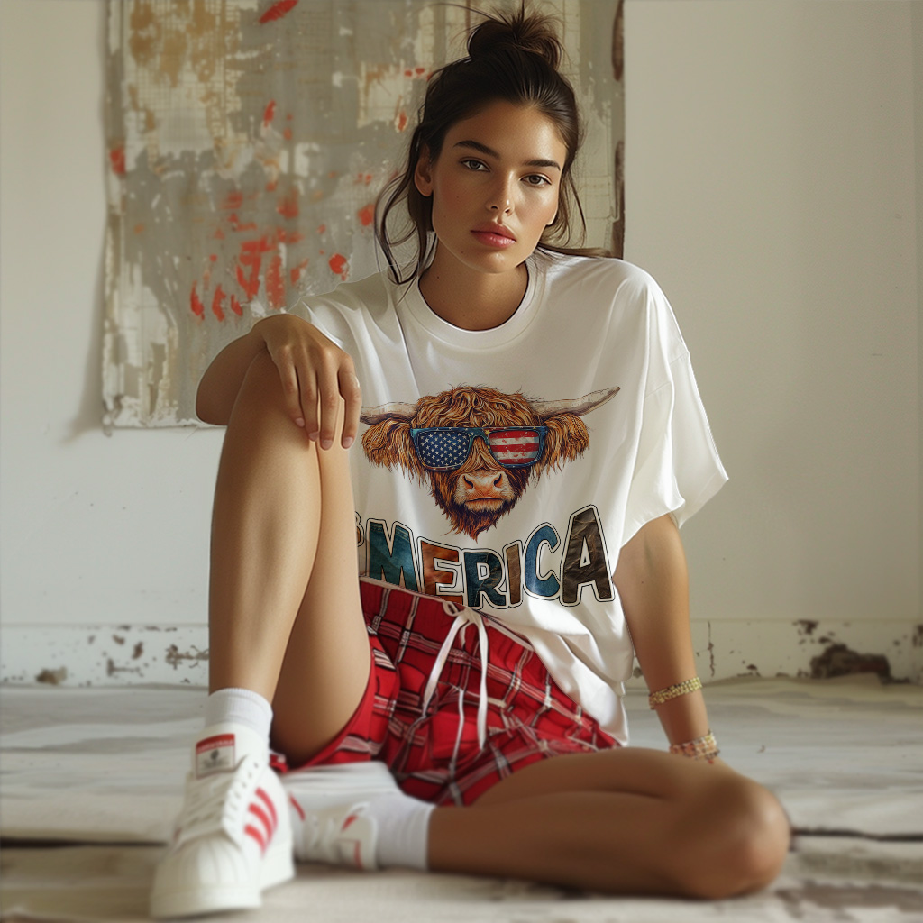 Highland Cow T-Shirt is no ordinary piece of clothing. Its taped neck and shoulders, double-needle sleeve and bottom hems, and quarter-turned construction provide a retail fit for clothing that’s true to size. Merica Heavy Cotton Tee is Designed and printed in California.