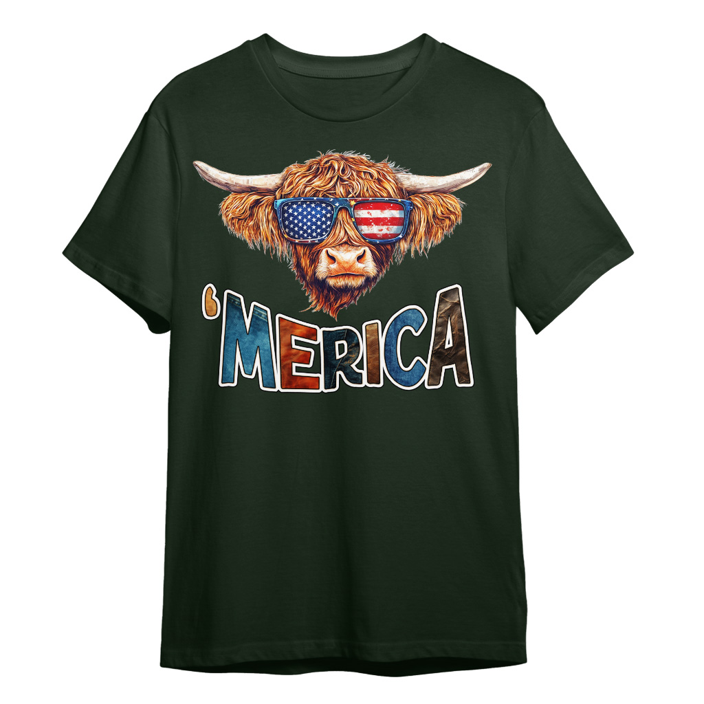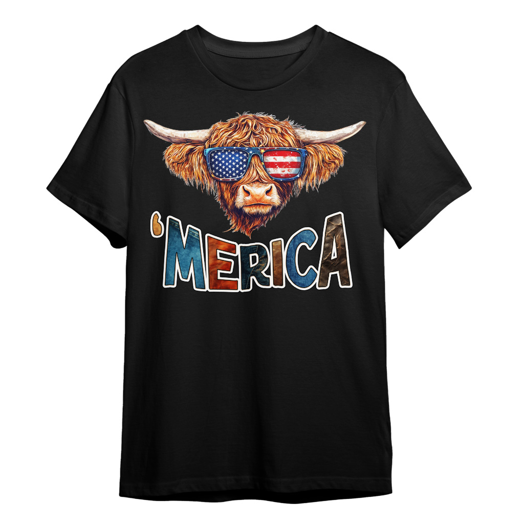 Highland Cow T-Shirt is no ordinary piece of clothing. Its taped neck and shoulders, double-needle sleeve and bottom hems, and quarter-turned construction provide a retail fit for clothing that’s true to size. Merica Heavy Cotton Tee is Designed and printed in California.
