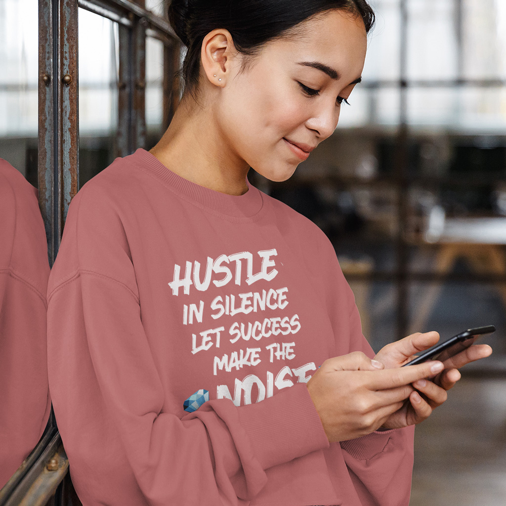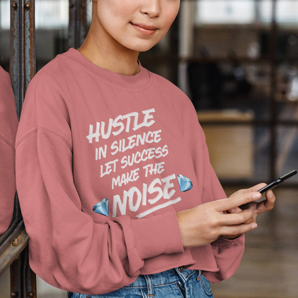 Hustle In Silence Let Success Make The Noise Cropped Long Sleeve Sweatshirt – Motivational Women’s Crop Top – Hustle Long Sleeves Pullover