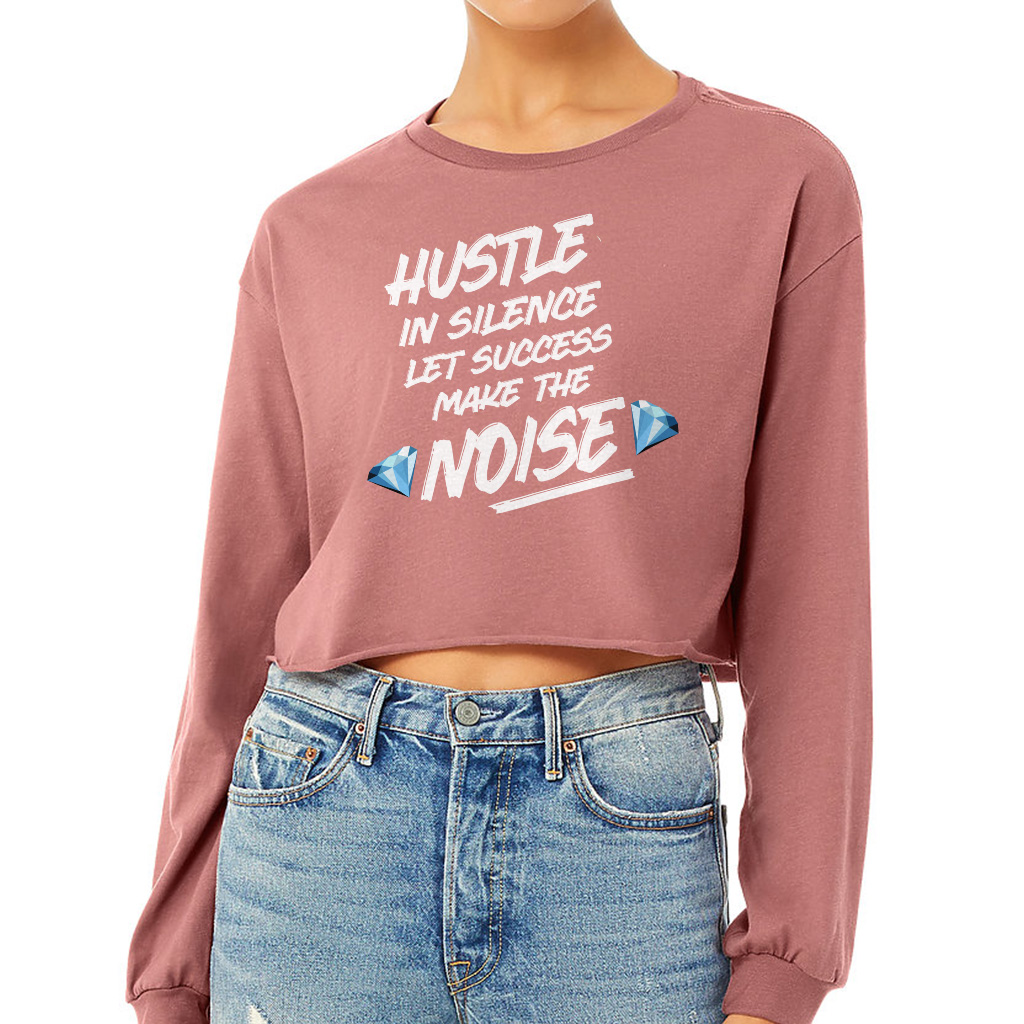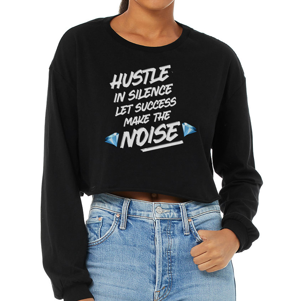 Hustle In Silence Let Success Make The Noise Cropped Long Sleeve Sweatshirt – Motivational Women’s Crop Top – Hustle Long Sleeves Pullover