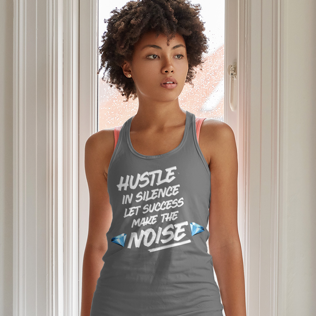Hustle In Silence Let Success Make The Noise Racerback Tank