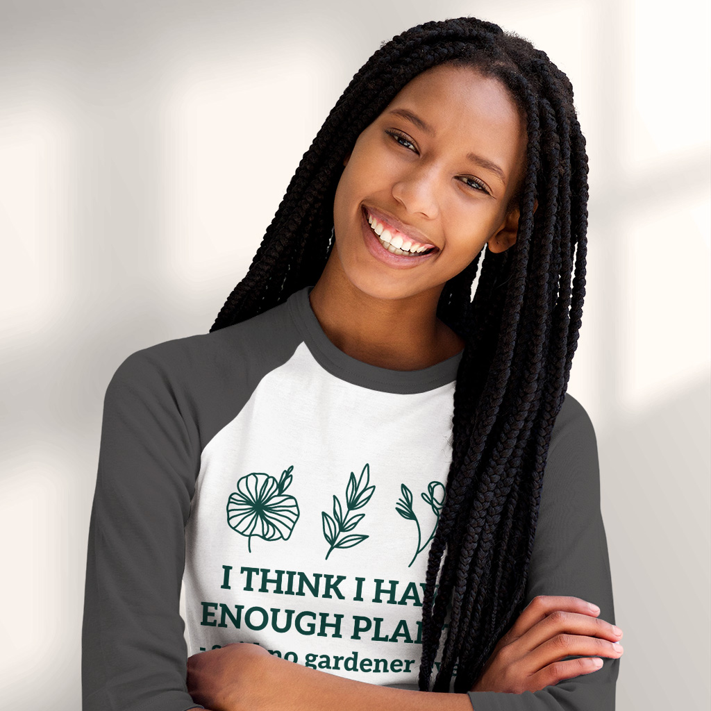 I Think I Have Enough Plants Baseball T-Shirt – Gardener 3/4 Sleeve – Plant Lover Raglan Jersey Shirt