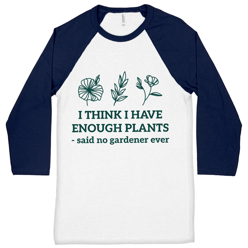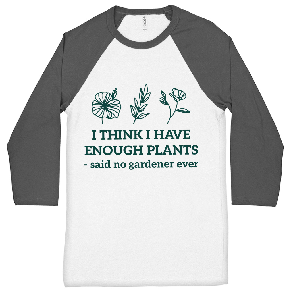 I Think I Have Enough Plants Baseball T-Shirt – Gardener 3/4 Sleeve – Plant Lover Raglan Jersey Shirt