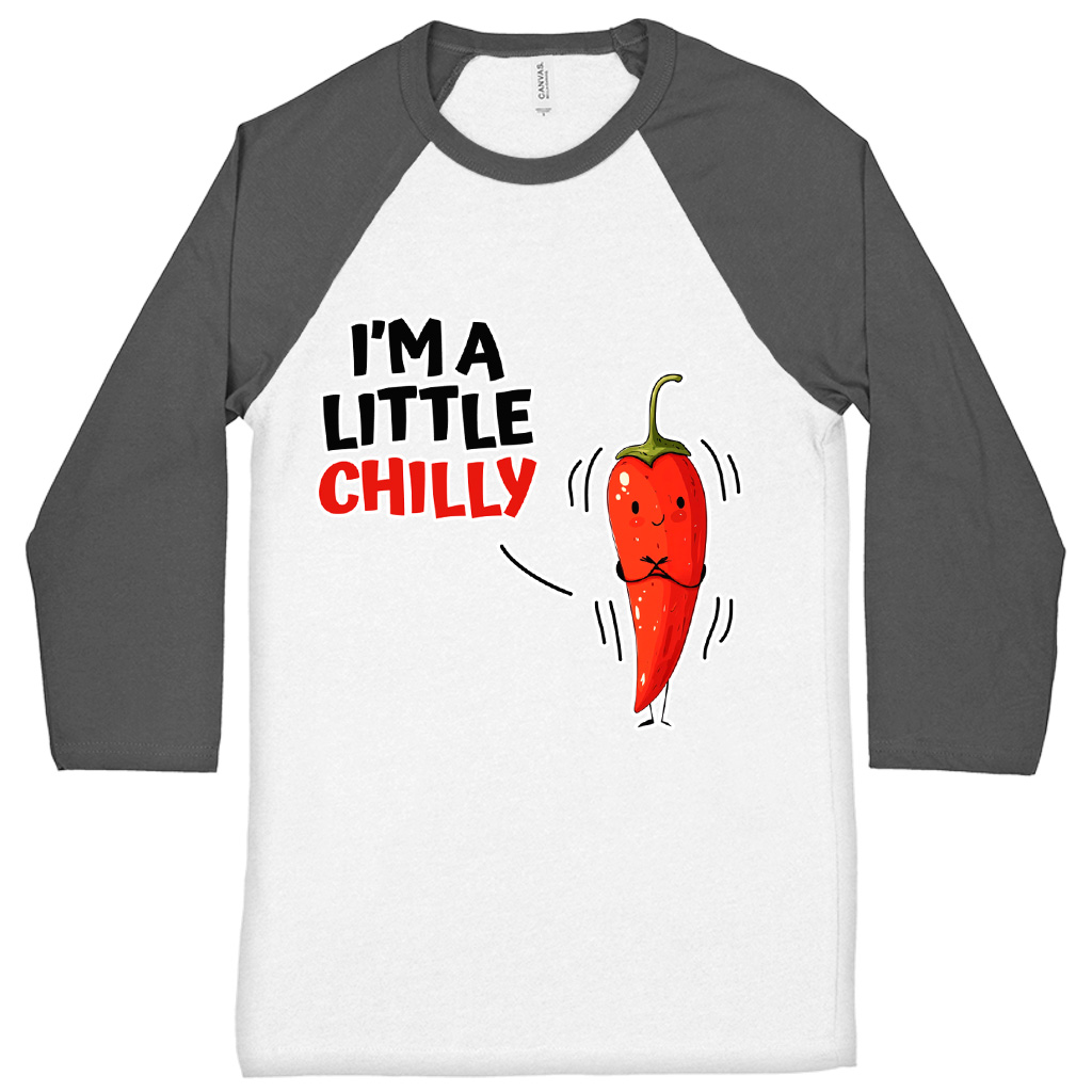 I’m A Little Chili Baseball T-Shirt is proudly made with 7x less water than average manufacturers, in recycle-friendly facilities that also guarantee zero sweatshop conditions. Gift for Foodie 3/4 Sleeve is designed and printed in California.