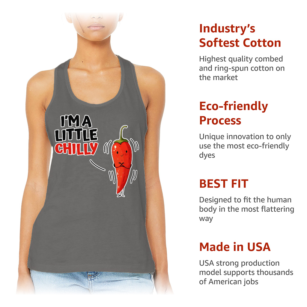 I’m A Little Chili Racerback Tank is no ordinary piece of clothing. Its side-seamed detail and flatlock-finished hems provide a retail fit for clothing that’s true to size.