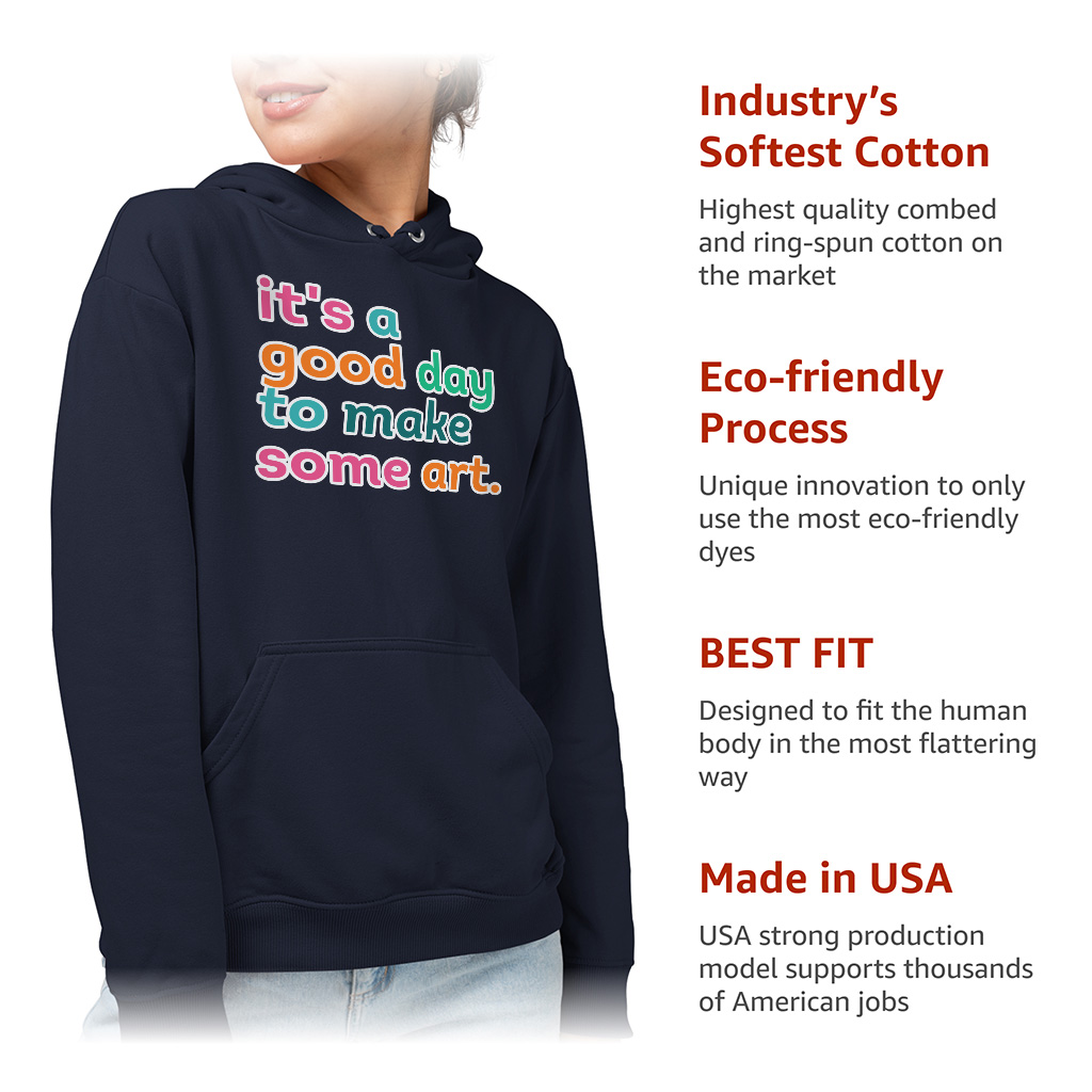 Our Airlume clean cotton is combed and ring-spun for texture and feel unlike any other. It’s A Good Day To Make Art Hoodie is made of 50/50 cotton/polyester fleece.