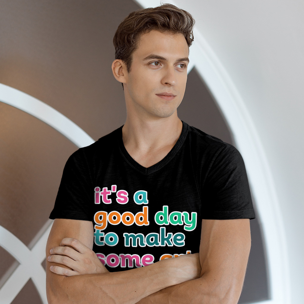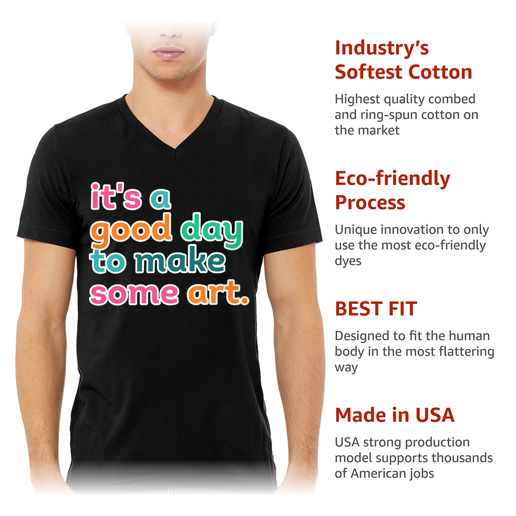 It’s A Good Day To Make Art V-Neck T-Shirt is proudly made with 7x less water than average manufacturers, in recycle-friendly facilities that also guarantee zero sweatshop conditions
