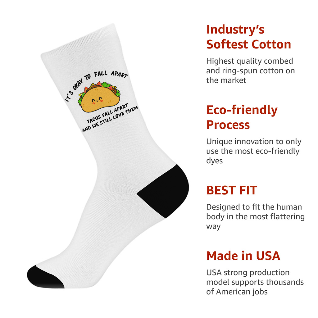 Cushioned foot bottom makes It’s Okay To Fall Apart Unisex Socks a sure bet for everyday wear, from work, play, gym, sports, and beyond. These socks are designed to be all-season. This product is made breathable for when it’s warm but thick enough for when it’s cold during the winter.