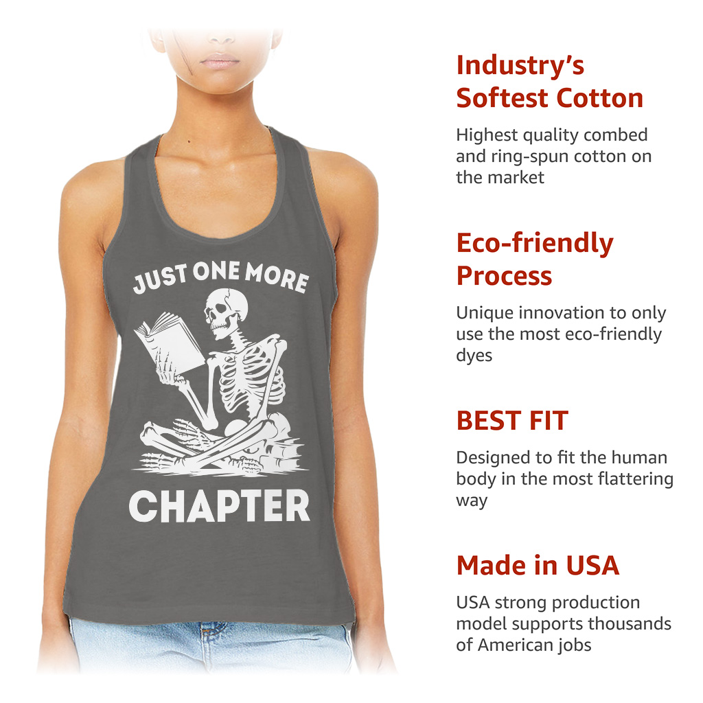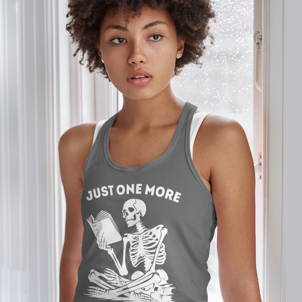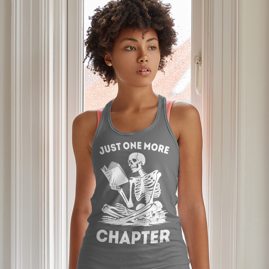 Just One More Chapter Racerback Tank is no ordinary piece of clothing. Its side-seamed detail and flatlock-finished hems provide a retail fit for clothing that’s true to size.
