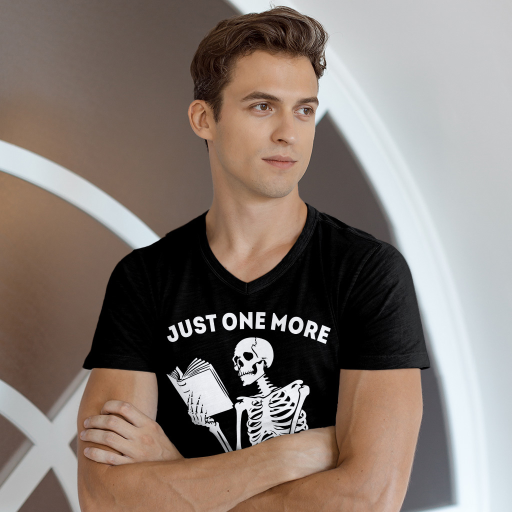 Just One More Chapter V-Neck T-Shirt is proudly made with 7x less water than average manufacturers, in recycle-friendly facilities that also guarantee zero sweatshop conditions