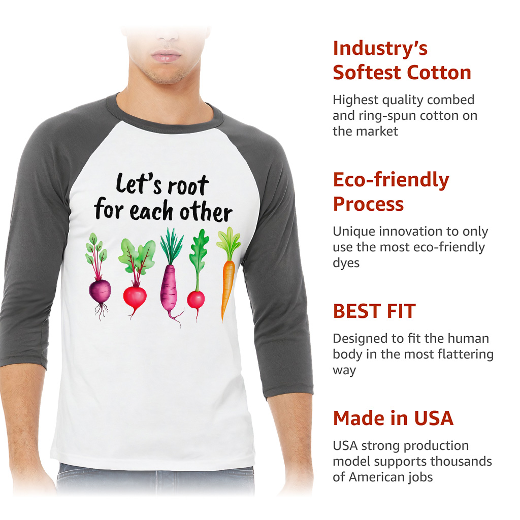 Let’s Root For Each Other Baseball T-Shirt – Spring 3/4 Sleeve – Uplifting Raglan Jersey Shirt