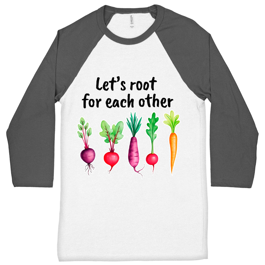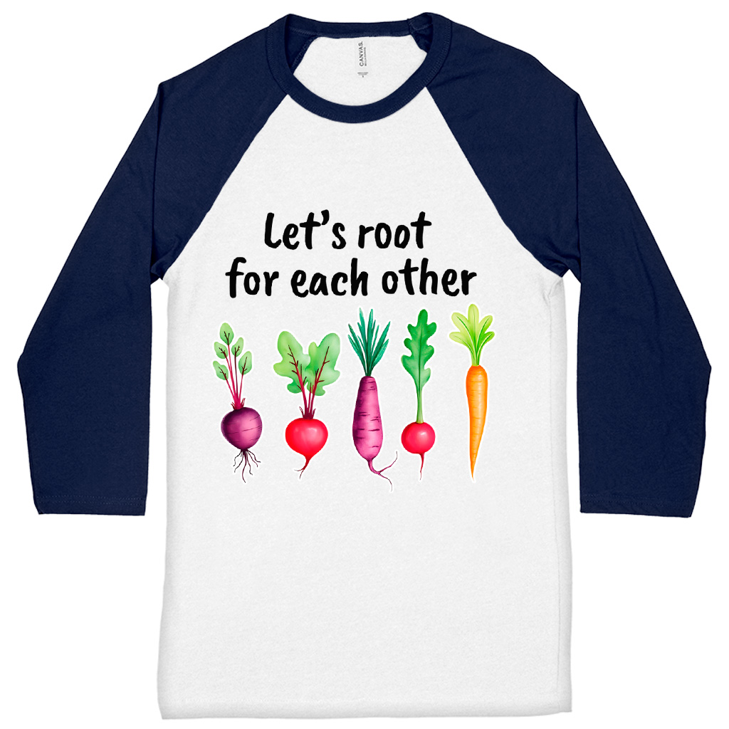 Let’s Root For Each Other Baseball T-Shirt – Spring 3/4 Sleeve – Uplifting Raglan Jersey Shirt