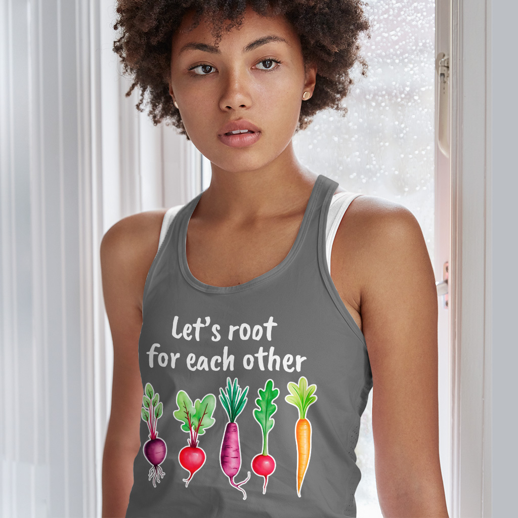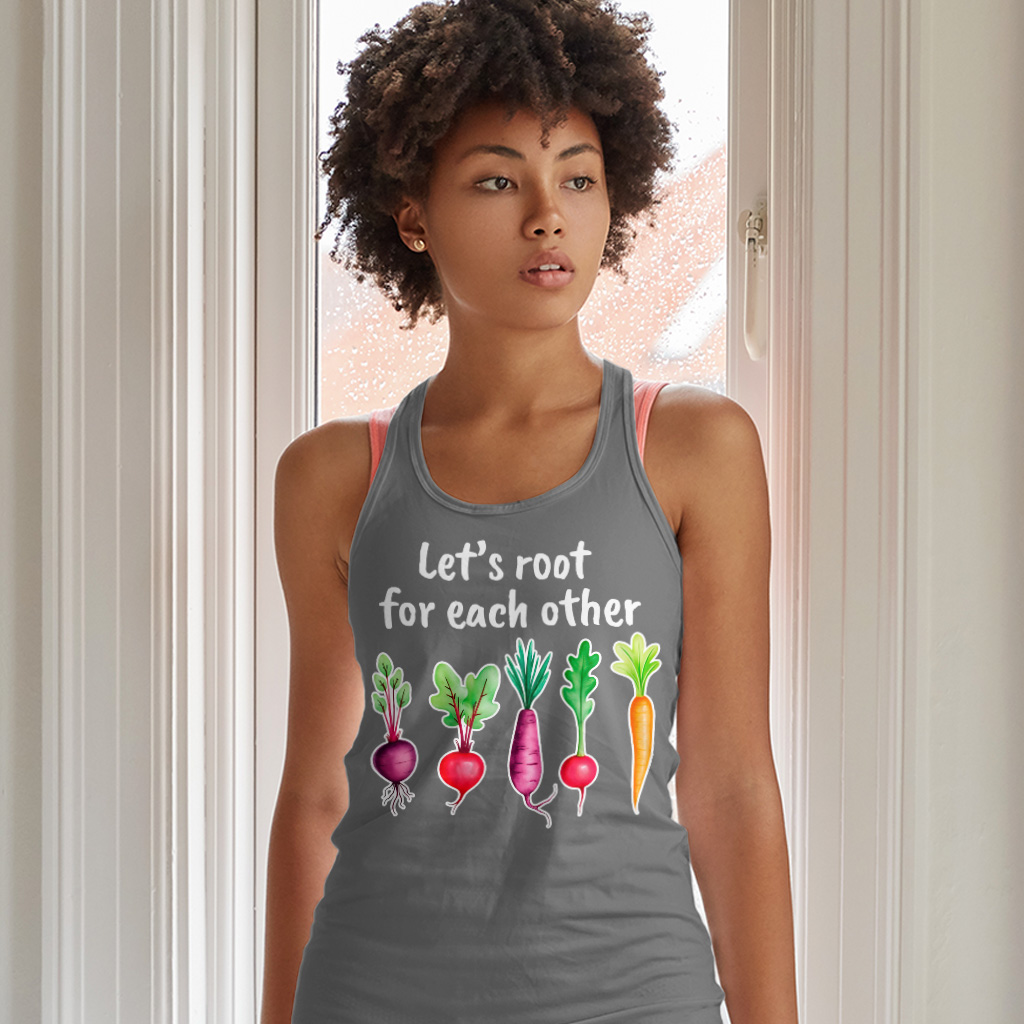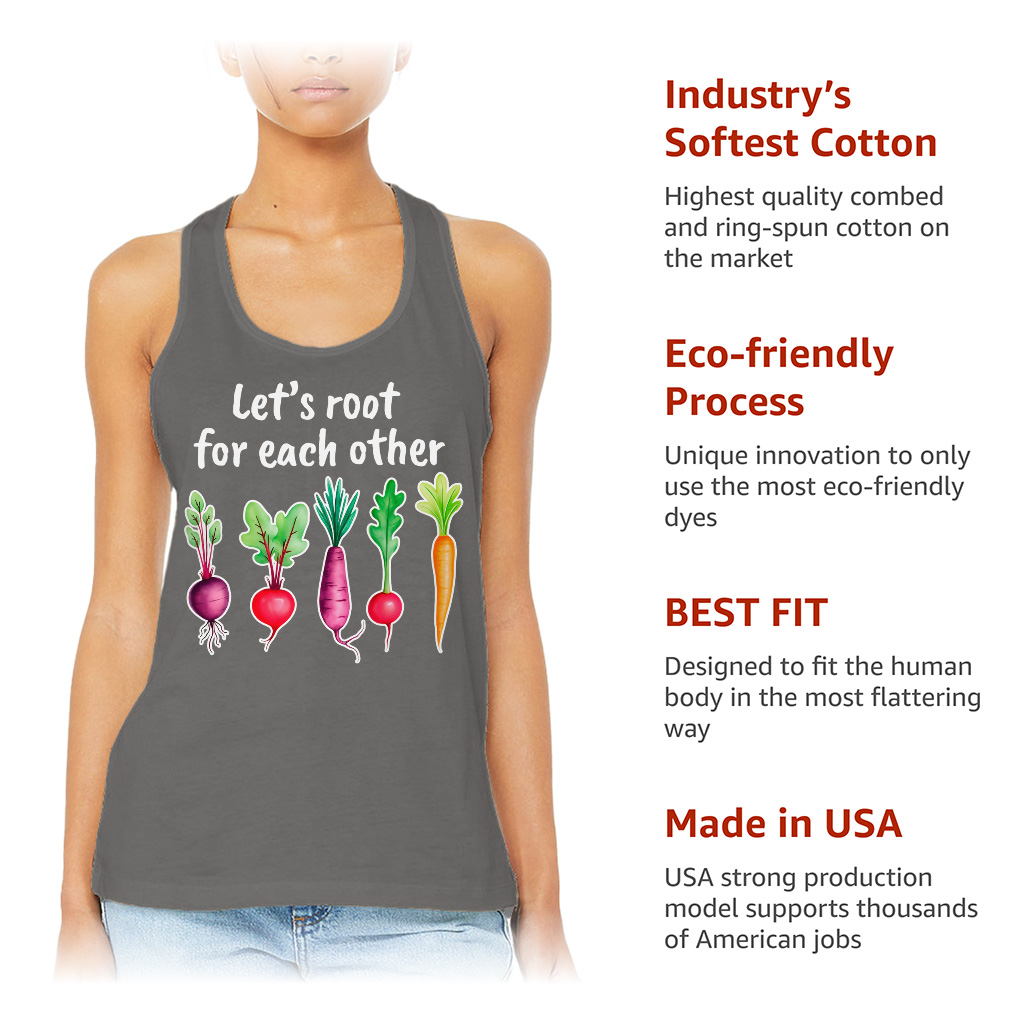 Let’s Roots For Each Other Racerback Tank is no ordinary piece of clothing. Its side-seamed detail and flatlock-finished hems provide a retail fit for clothing that’s true to size.